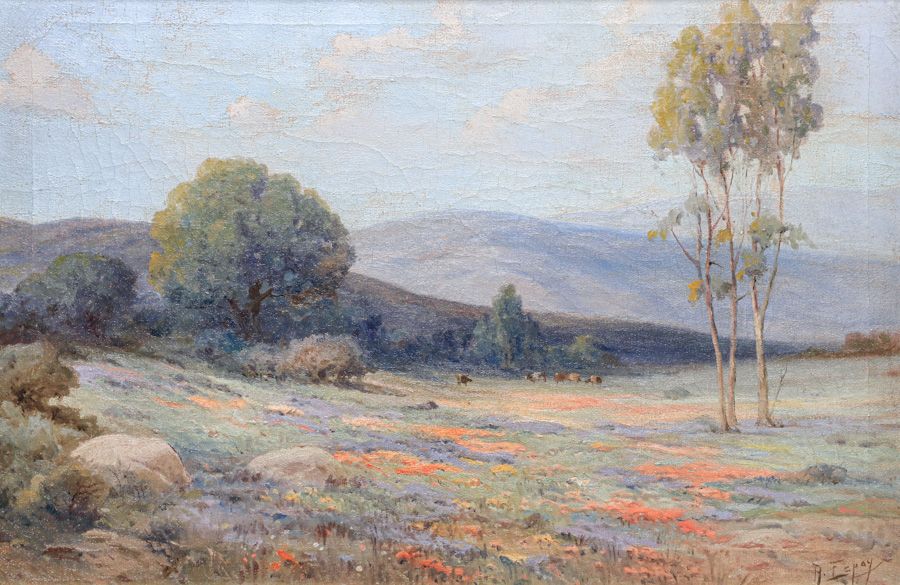 - Angel Espoy (1879-1963) California Eucalyptus, Poppies & Lupine Painting c1910s