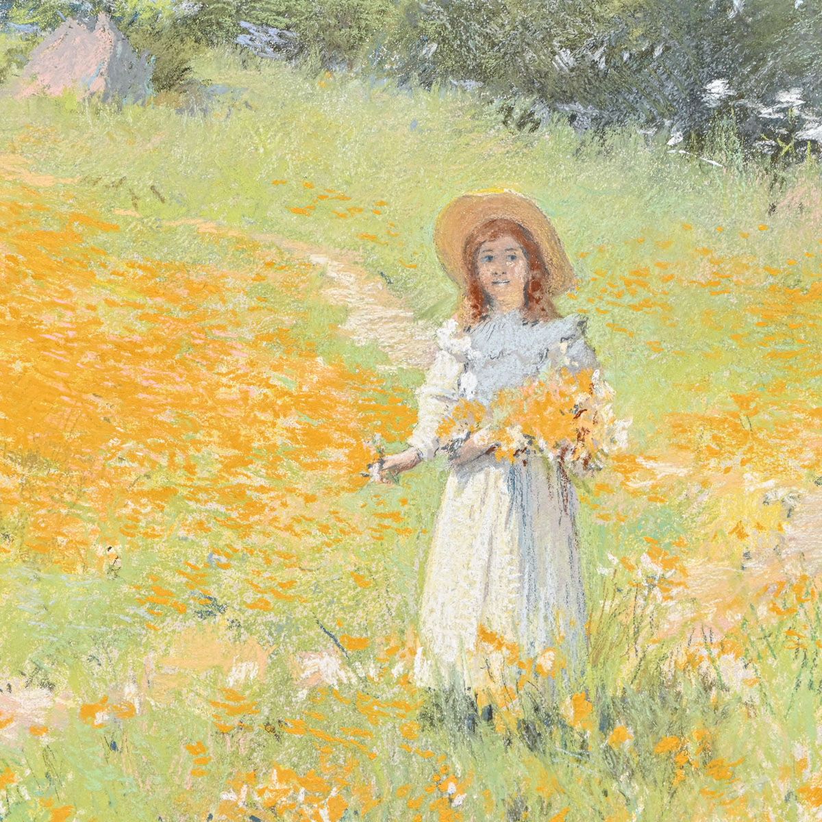 - Arthur Frank Mathews (1860-1945) Pastel "In the Poppy Field" c1910