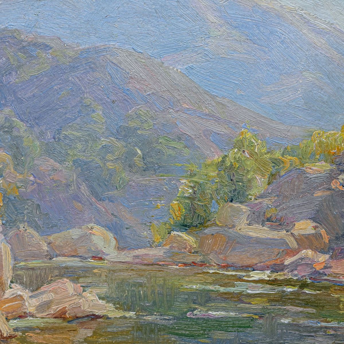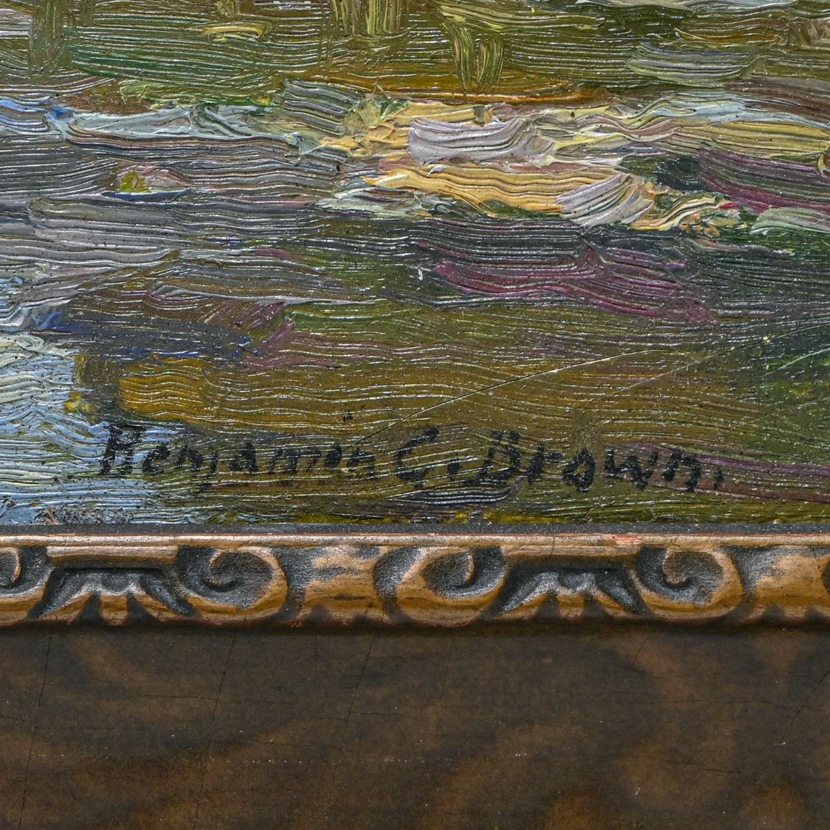 Benjamin Chambers Brown (1865-1942 Pasadena, CA) Southern California Painting "Santa Anita Canyon" c1910s. Signed. Excellent condition. 10"h x 13"w. Frame 15.5"h x 19"w