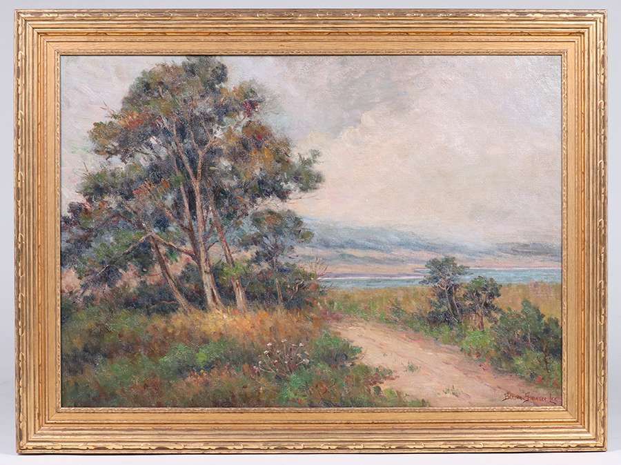Bertha Stringer Lee (1869-1937) oil painting entitled "Carmel Bay". Signed. Excellent condition. 24"h x 34"w. Frame 29.5"h x 39.5"w SOLD
