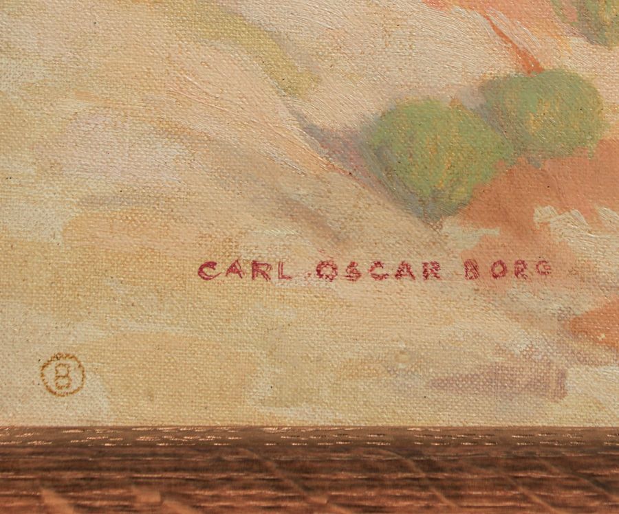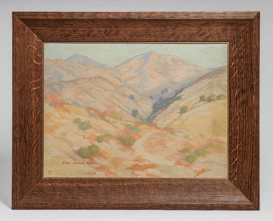 Carl Oscar Borg (1879-1947) California Rolling Hills Painting c1920s. Signed. Excellent condition. Tim Holton custom oak frame. 12"h x 16"w. Frame 16 5/8"h x 20 5/8"w $4500