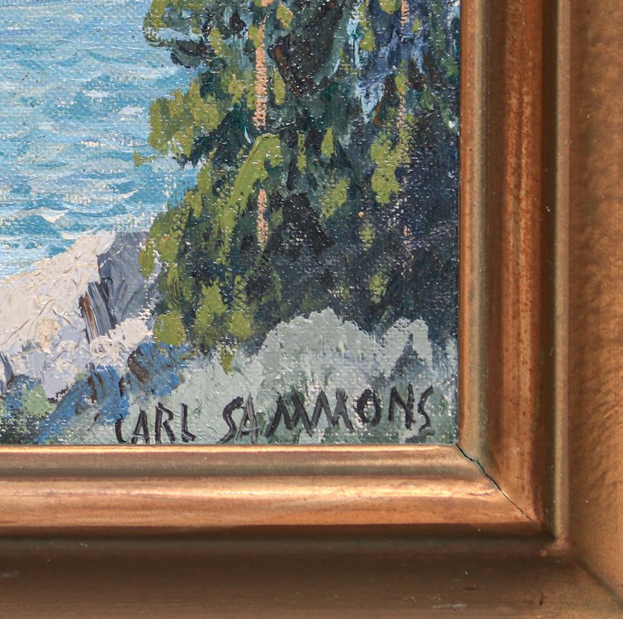 Carl Sammons (1883-1968) “Mt Moran – Jackson Lake – Teton Mountains, Wyoming” c1920s. Oil painting on board. Signed. Excellent condition. 12"h x 16"w. Frame 17.5"h x 21.5" $5500