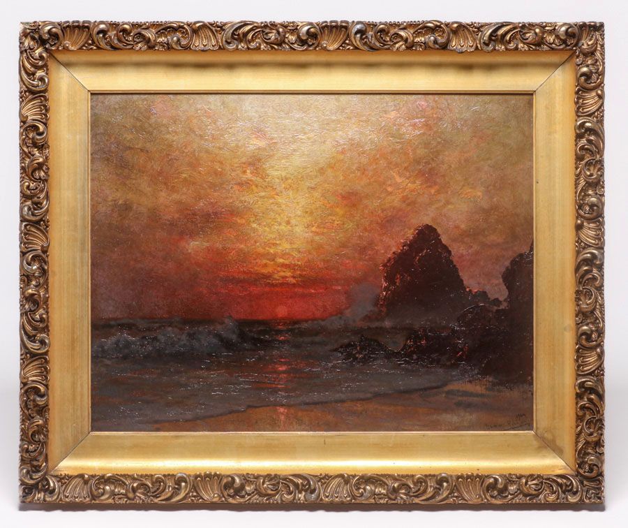 Charles Dormon Robinson (1847-1933) San Francisco Land's End Sunset Painting 1904. Signed. Excellent condition. 20"h x 26"w. Original frame 27.5"h x 33.5"w SOLD