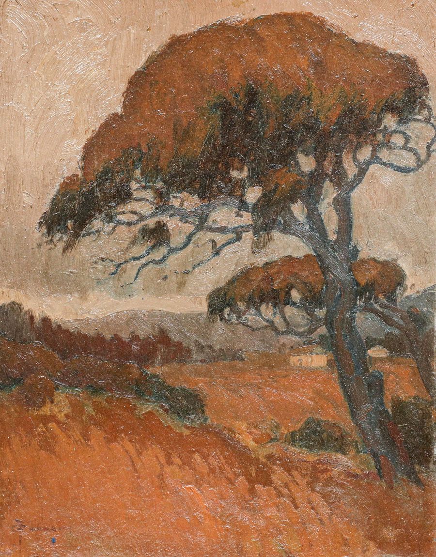 Charles Louis Turner (1867-1919) Painting Monterey Cypress Tree c1910. Oil painting on board. Turner studied with Arthur Mathews and was a member of the San Francisco Sketch Club. Signed. Excellent condition. 13”h x 10”w. Frame 18”h x 15.25” w SOLD