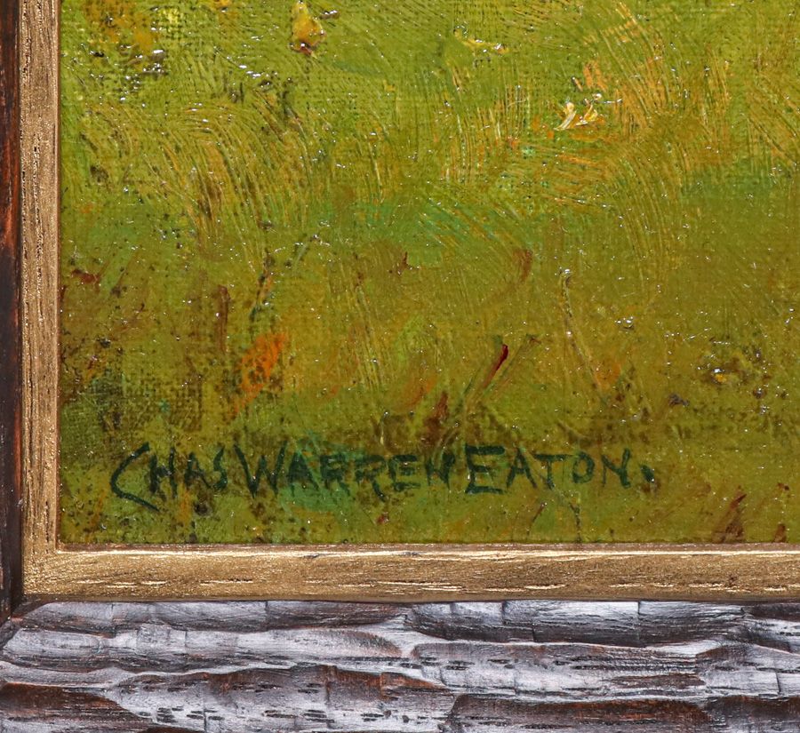 Charles Warren Eaton (1857-1937) Pastoral Landscape c1910. Oil painting on board. Signed. Excellent condition. Tim Holton custom hand-carved oak frame. 12”h x 16”w. Frame 18.5”h x 22.25”w SOLD