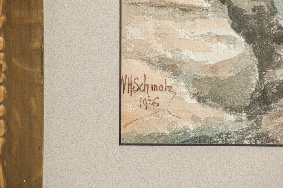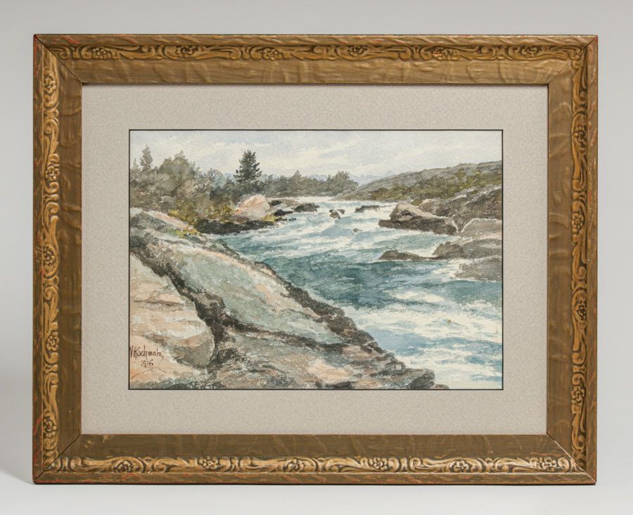 W.H. Schmalz Watercolor Mathias Falls Muskoka, Canada 1926. Signed. Excellent condition. 8"h x 11.5"w. Frame 13 7/8"h x 17 3/8"w