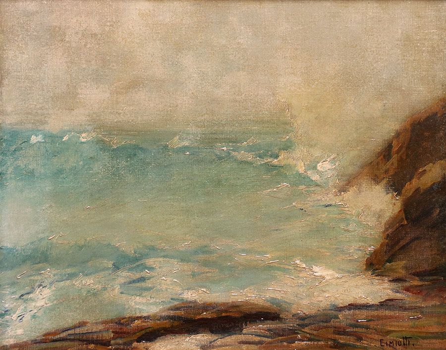 - Gustave Cimiotti, Jr. (1875-1969) Painting "Grey and Green Sea" c1910