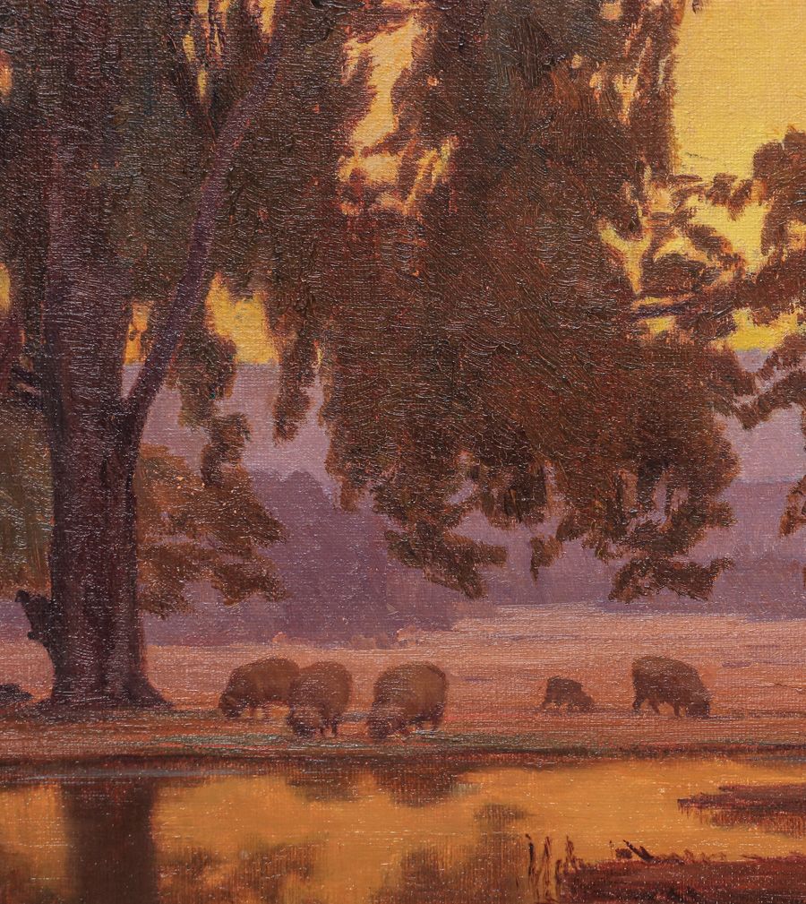 Henry Otto Wix (1866-1922) Eucalyptus Sunset California Painting 1919. Wix was active in Northern California and often painted Marin Co. 36″h x 29″w. 22″h x 28″w. Frame 29″h x 34.5″w SOLD