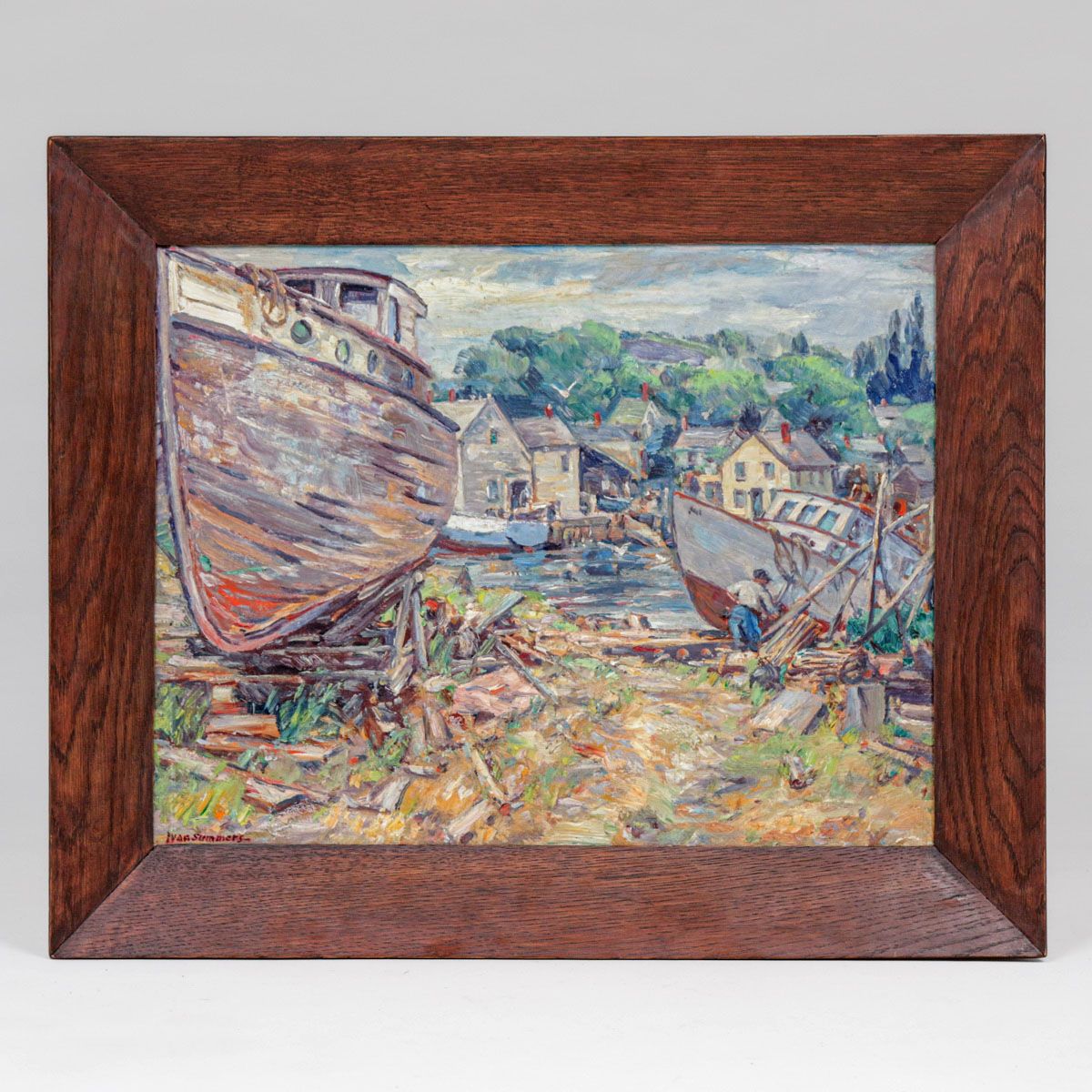 Ivan F. Summers (1889-1964) WPA era Painting Gloucester Harbor c1930s. Oil painting on board. Signed. Excellent condition. 14"h x 17"w. Frame 18'h x 21.75"w