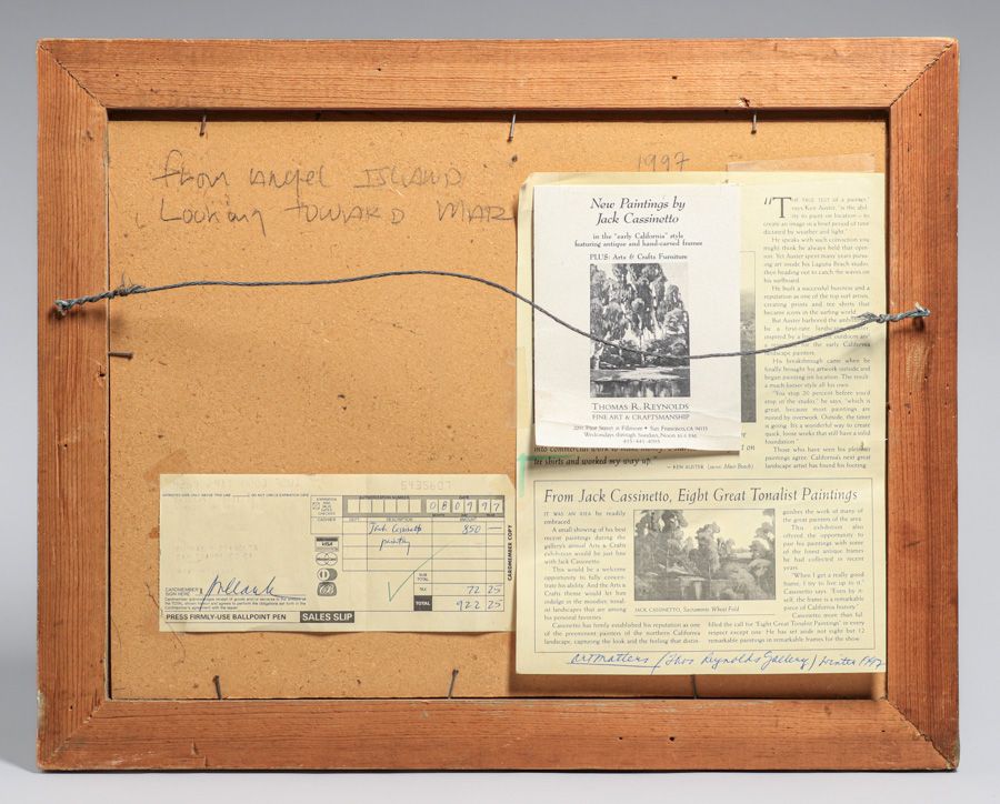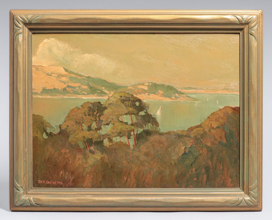 Jack Cassinetto (1944-2018) California Painting “From Angel Island Looking Towards Marin” 1997. Excellent condition. Signed. 12"h x 16"w. Frame 15"h x 19"w SOLD