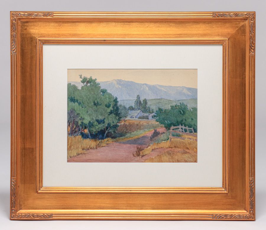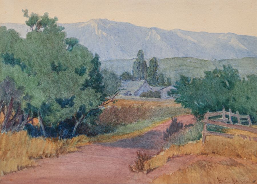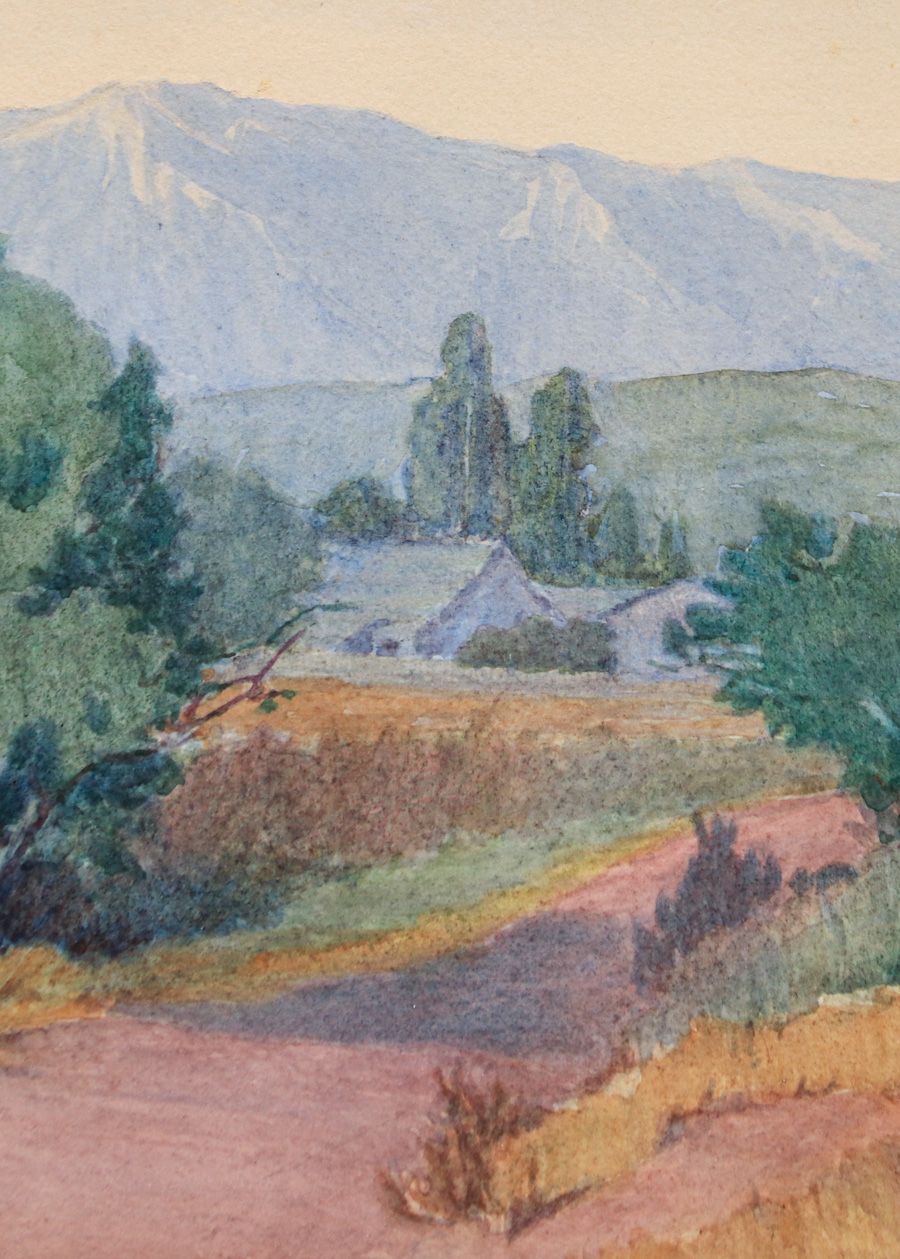 - Marion Kavanaugh Wachtel (1876-1954) California Ranch Mountain Watercolor 1904