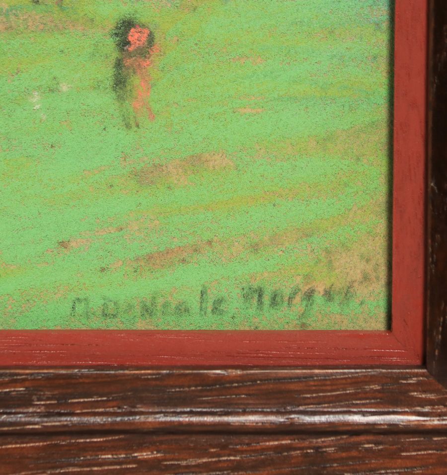 Mary de Neale Morgan (1868-1948) California Pastel Monterey Bay c1920s. Signed. Excellent condition. Tim Holton custom oak frame. 7.5"h x 9.5"w. Frame 11.75"h x 14.25"w SOLD
