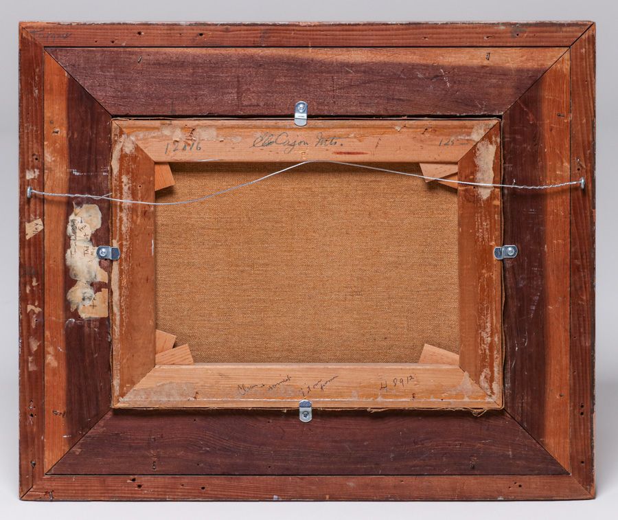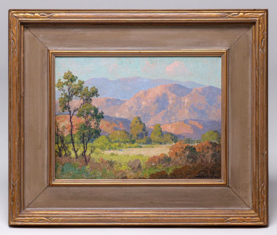 Maurice Braun (1877-1941) San Diego, CA Painting "El Cajon Mts" c1910s. Oil painting on canvas. Signed. Excellent condition. 12"h x 15"w. Frame 20"h x 24"w SOLD