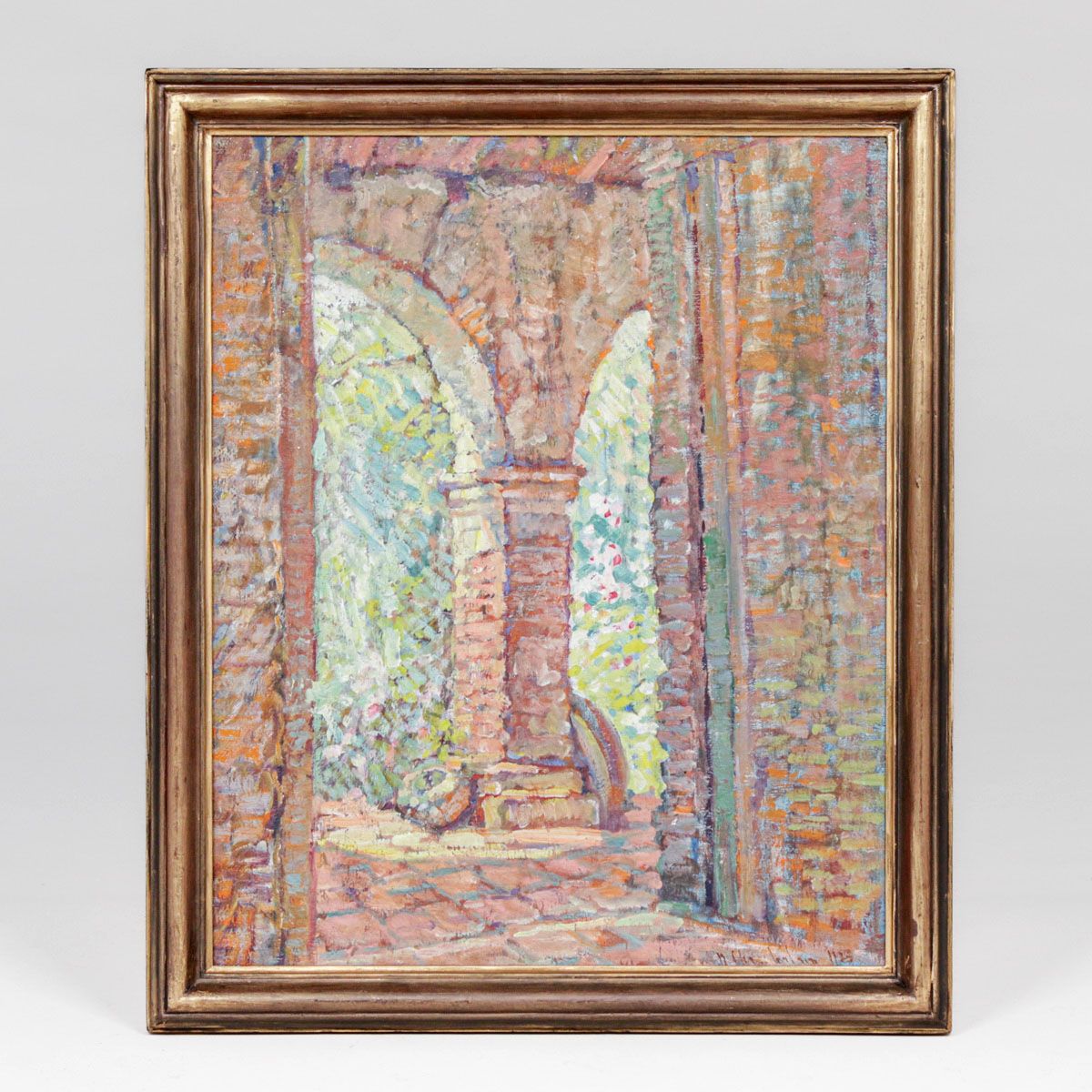 Norman Stiles Chamberlain (1887-1961) Painting Chamber in Mission San Juan Capistrano 1923. Oil painting on board. Signed. Excellent condition. 22"h x 18"w. Frame 25"h x 21"w