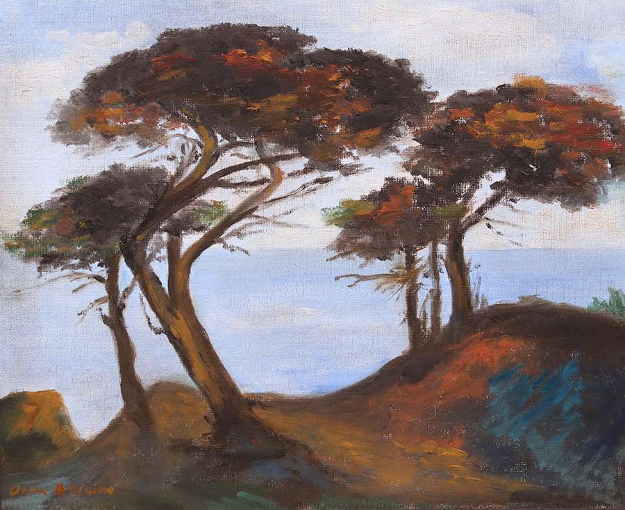- Orrin White California Painting Monterey Cypress Coastal c1940s