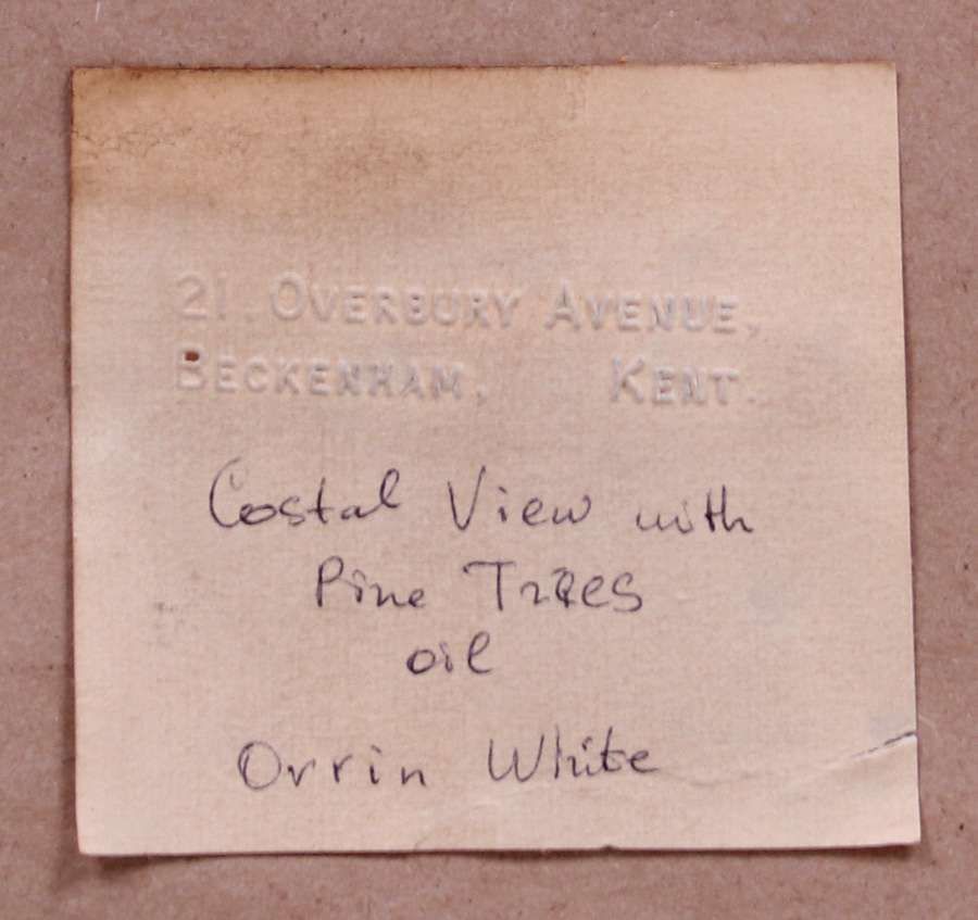Orrin White (1883-1969) oil painting on board of Coastal Monterey Cypress Trees c1940s. Signed. Excellent condition. 11.5"h x 14.25"w. Frame 16.75"h x 18"w SOLD