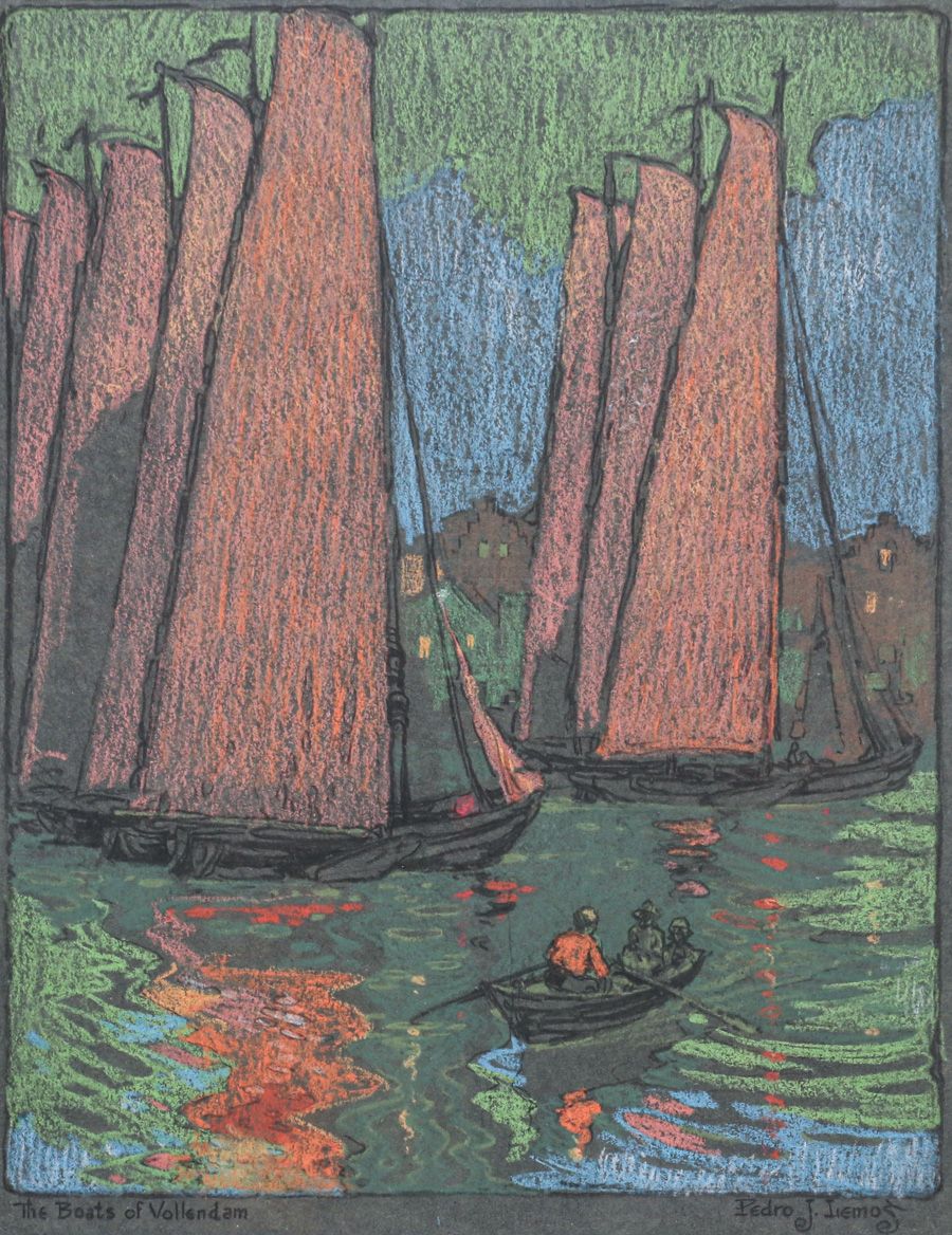 - Pedro de Lemos (1882-1954) Pastel "The Boats of Vollendam" c1910