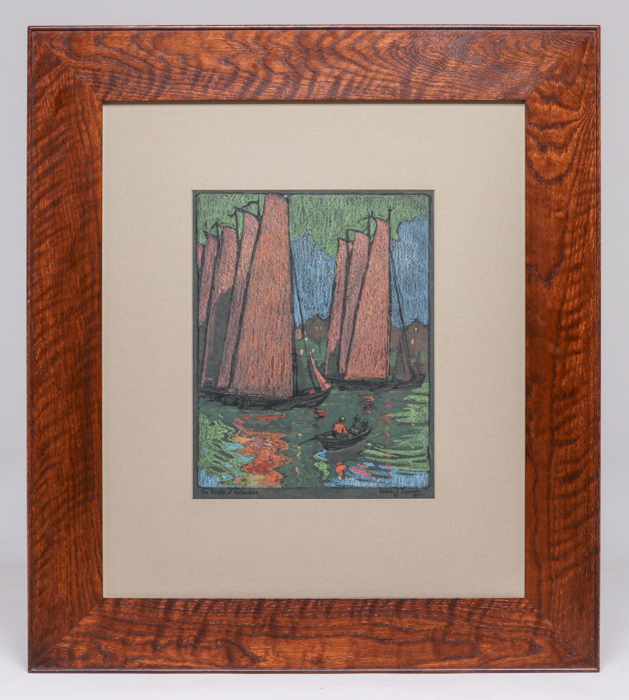 Pedro de Lemos (1882-1954) Pastel "The Boats of Vollendam" c1910. Signed. Excellent condition. Image 11.5"h x 9"w. Frame 25.5"h x 22.5"w SOLD
