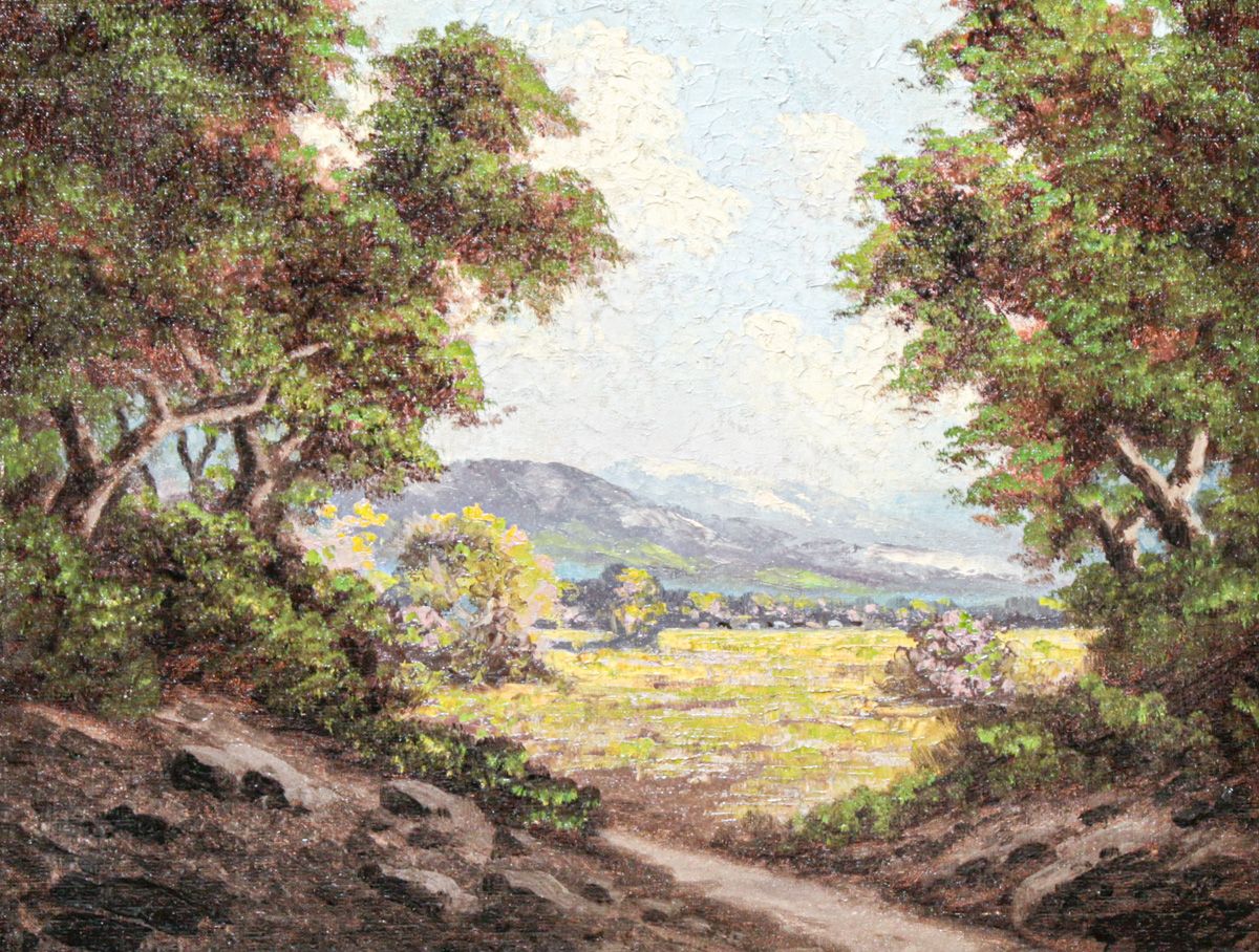 - Northern California Oak Trees & Rolling Hills Painting c1910