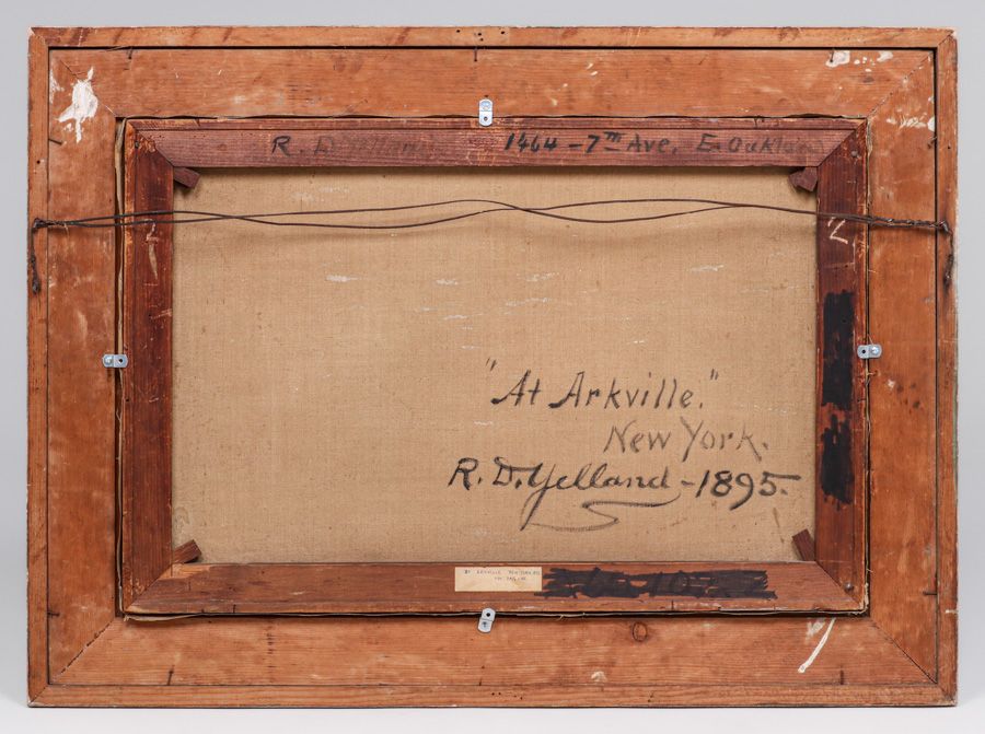 Raymond Dabb Yelland (1848 - 1900) Early Impressionist Painting "At Arkville, New York" 1895. From Edan Hughes book "A master at depicting sunsets and other atmospheric glow, his painting technique was a fusion of American Luminism and the Hudson River School." Arkville is located in the Catskill Mountains west of Woodstock, NY. Signed. Excellent condition. 20"h x 30"w. Frame 27.5"h x 37.5"w $12,000