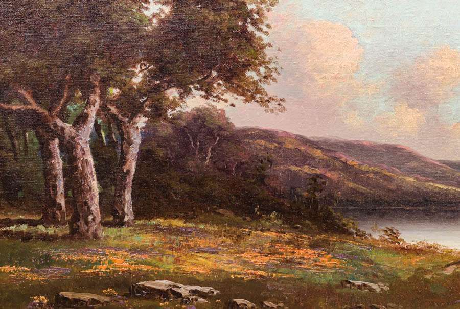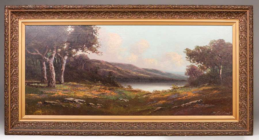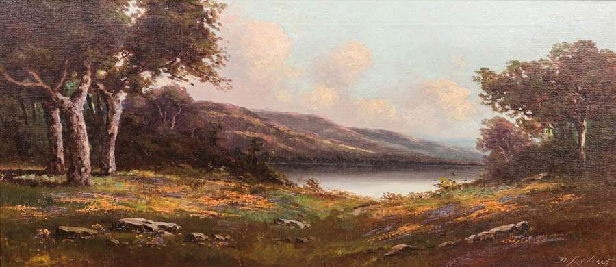 Richard DeTreville Landscape Painting Oak Trees and Lake c1910s. Signed. Excellent condition. 16"h x 36"w. Original Frame 22"h x 42"w SOLD