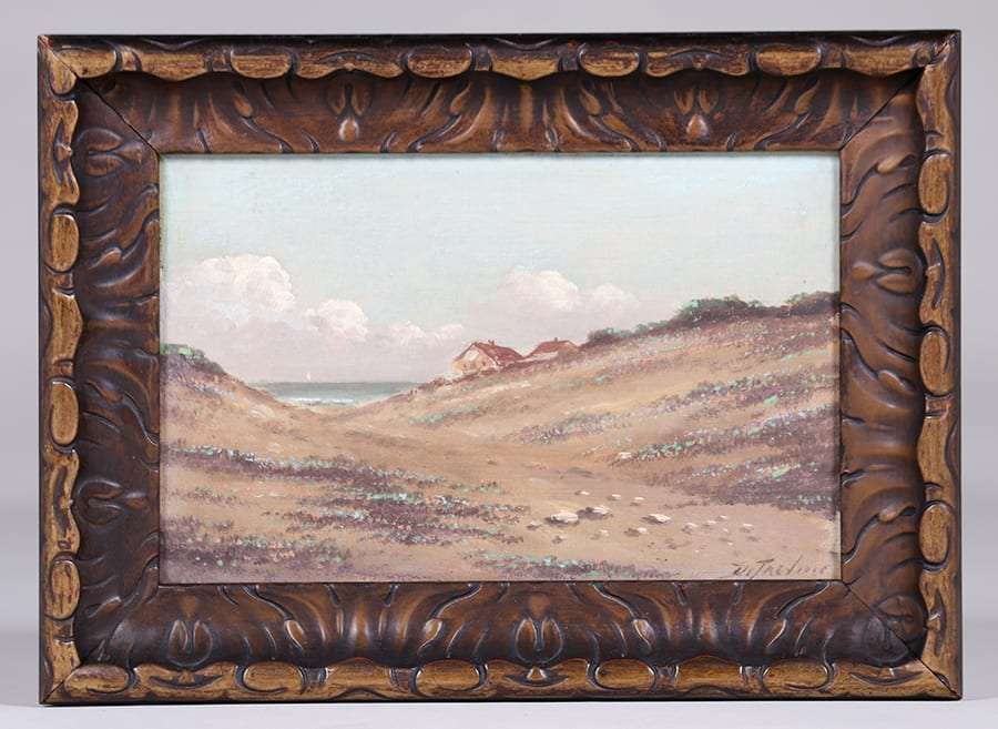 Richard Detreville (1864-1929) oil painting on board of California sand dunes c1910. Signed. Excellent condition. 6.5"h x 10"w. Original frame 9.75"h x 13.5"w SOLD
