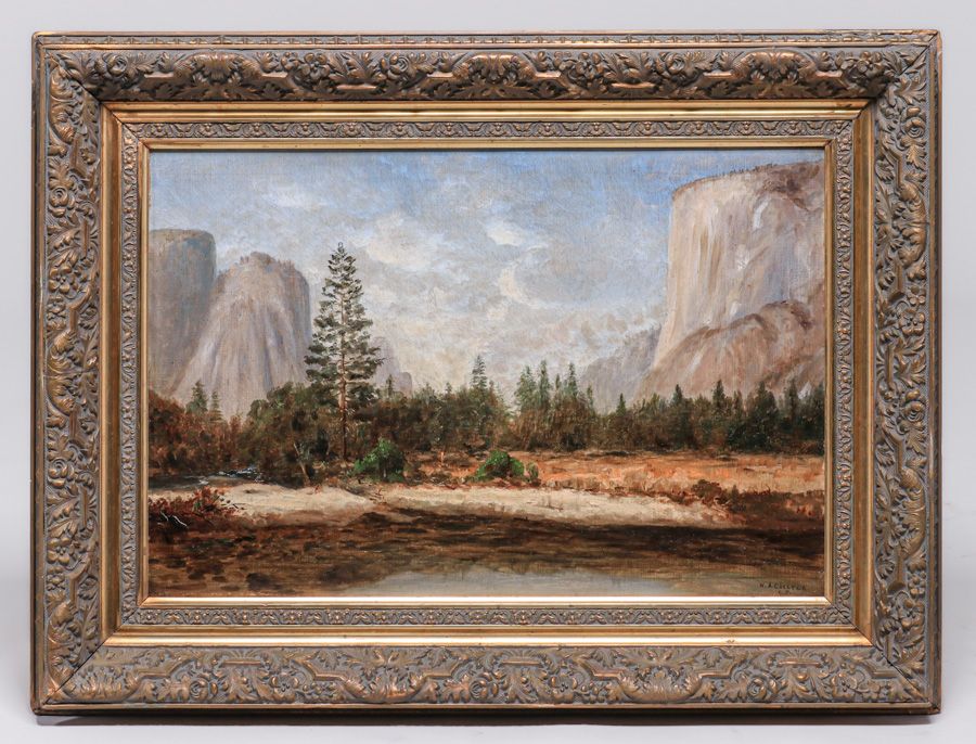 William Alexander Coulter (1849-1936) Yosemite Valley c1880s. Signed. Relined. Excellent condition. 16"h x 24"w. Frame 23.75"h x 31.5"w SOLD