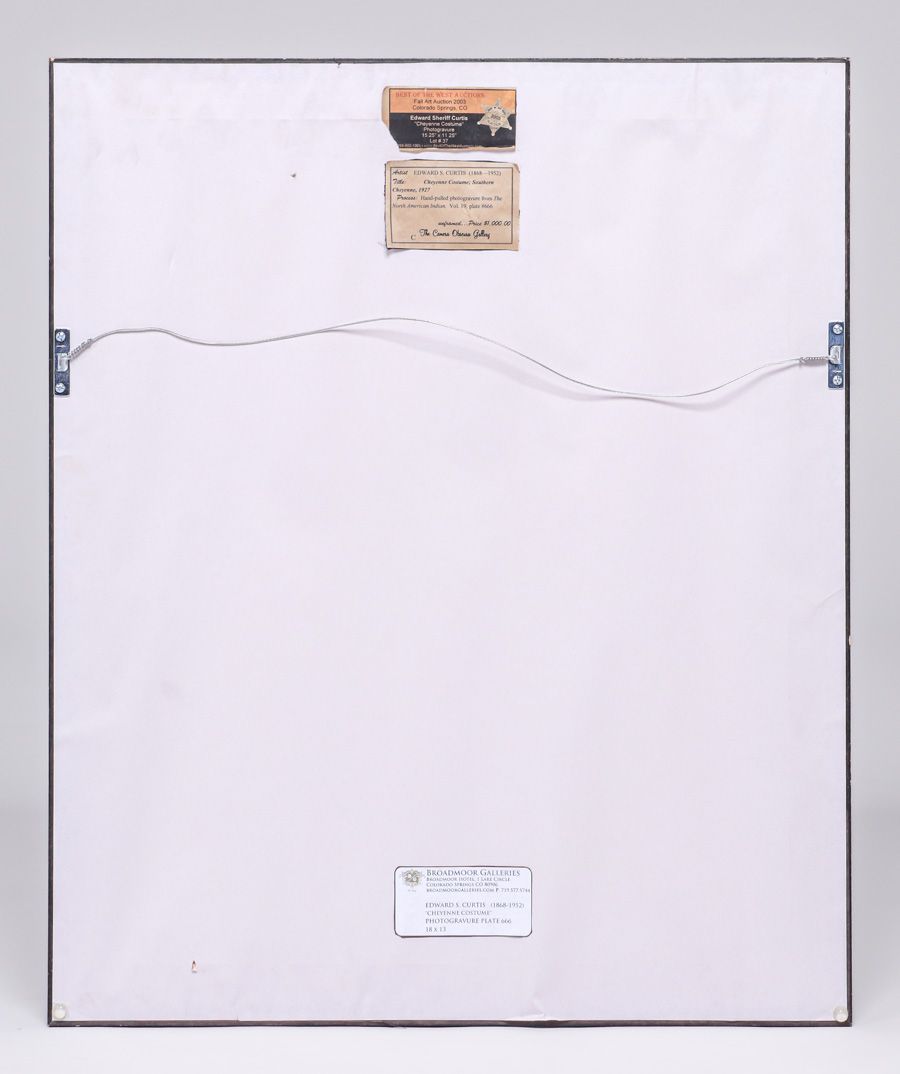 Edward Curtis Photogravure "Cheyenne Costume" 1927. Signed. Excellent condition. Image 15.5"h x 11.5"w. Frame 28.5"h x 23 5/8"w $2200