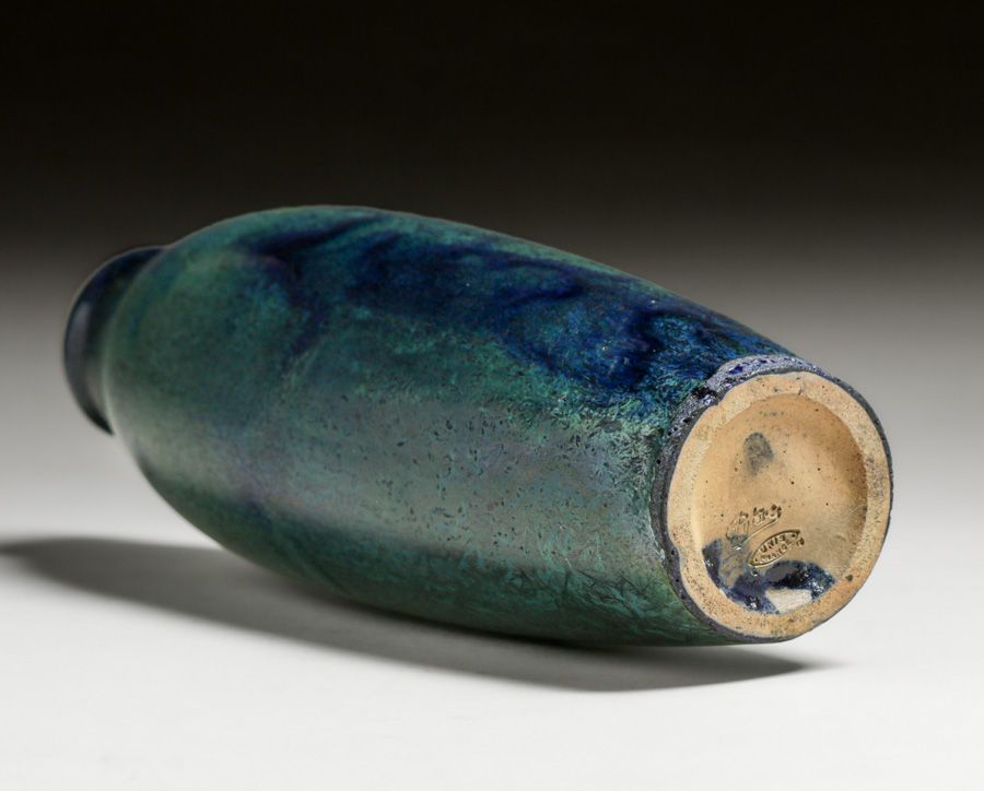 Alphonse Cytere - French Blue Crystalline Vase c1910. Signed. Some excess grinding to glaze and glaze bubbles at base, otherwise perfect condition. 10"h x 3.25"d