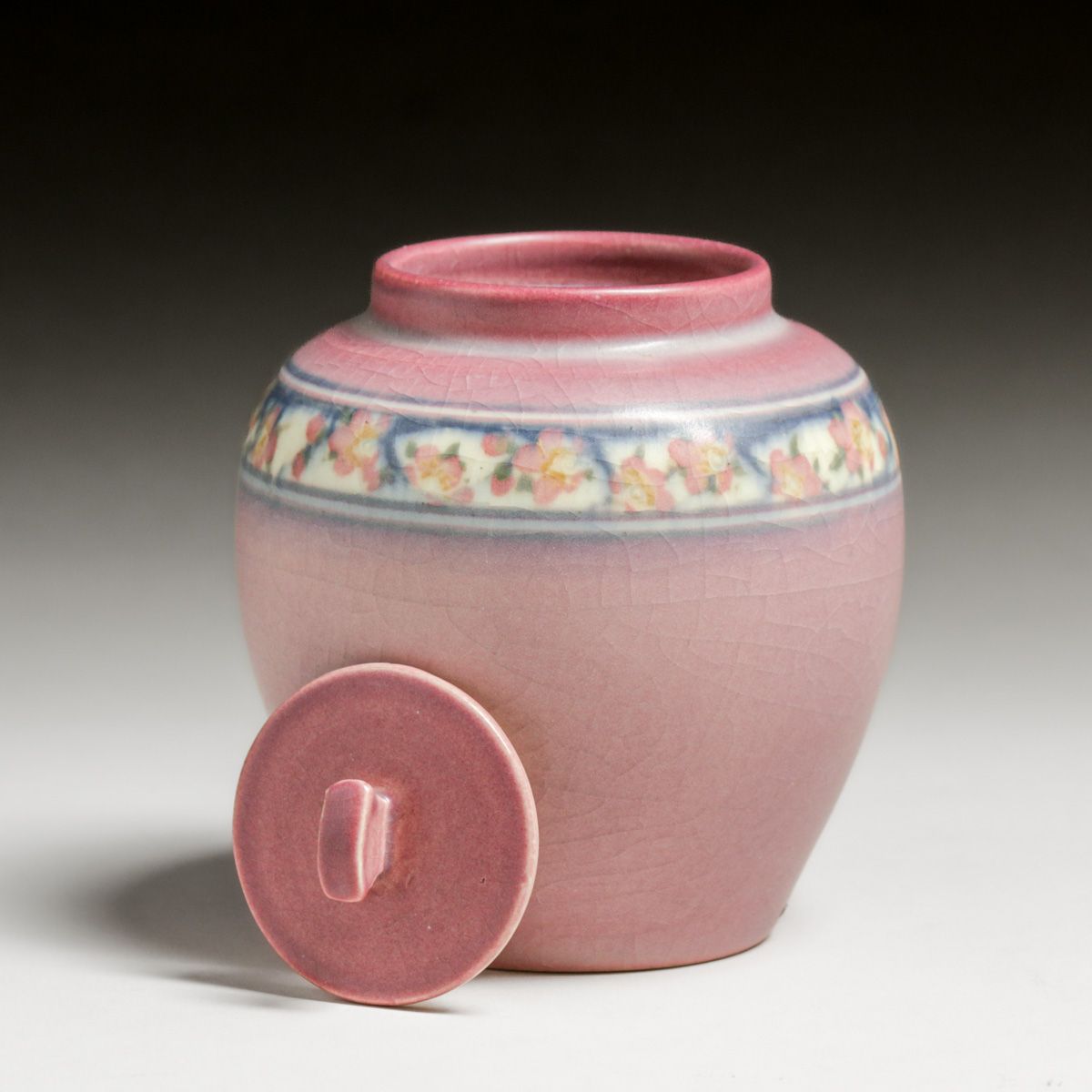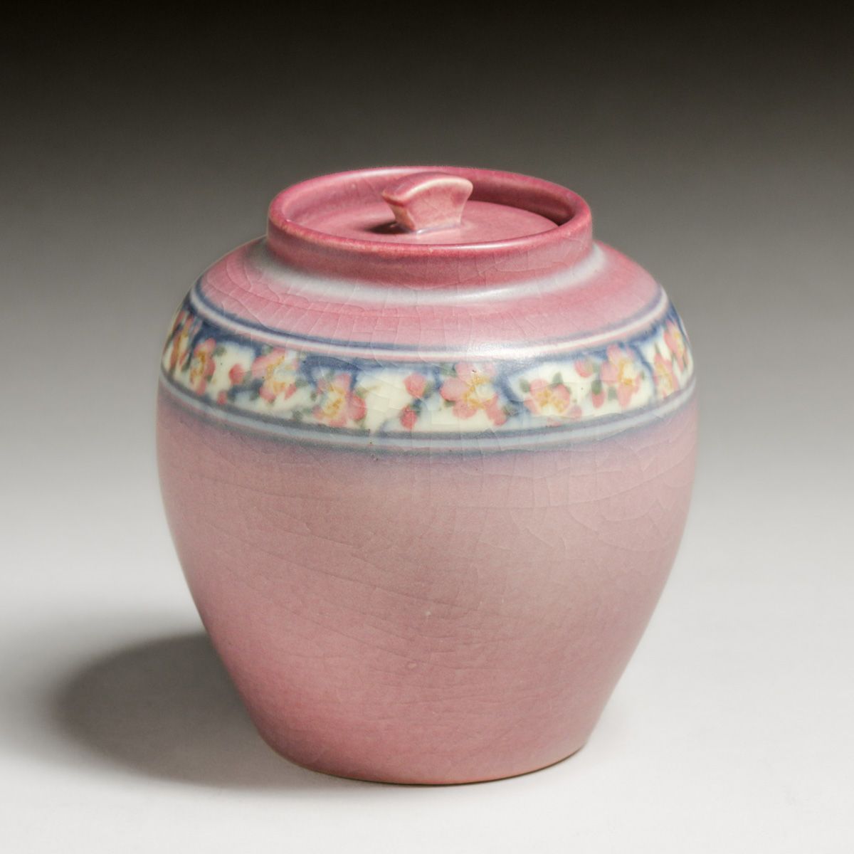 Rookwood Pottery E.T. Hurley Cherry Blossom Lidded Jar 1919. Signed. Perfect condition.