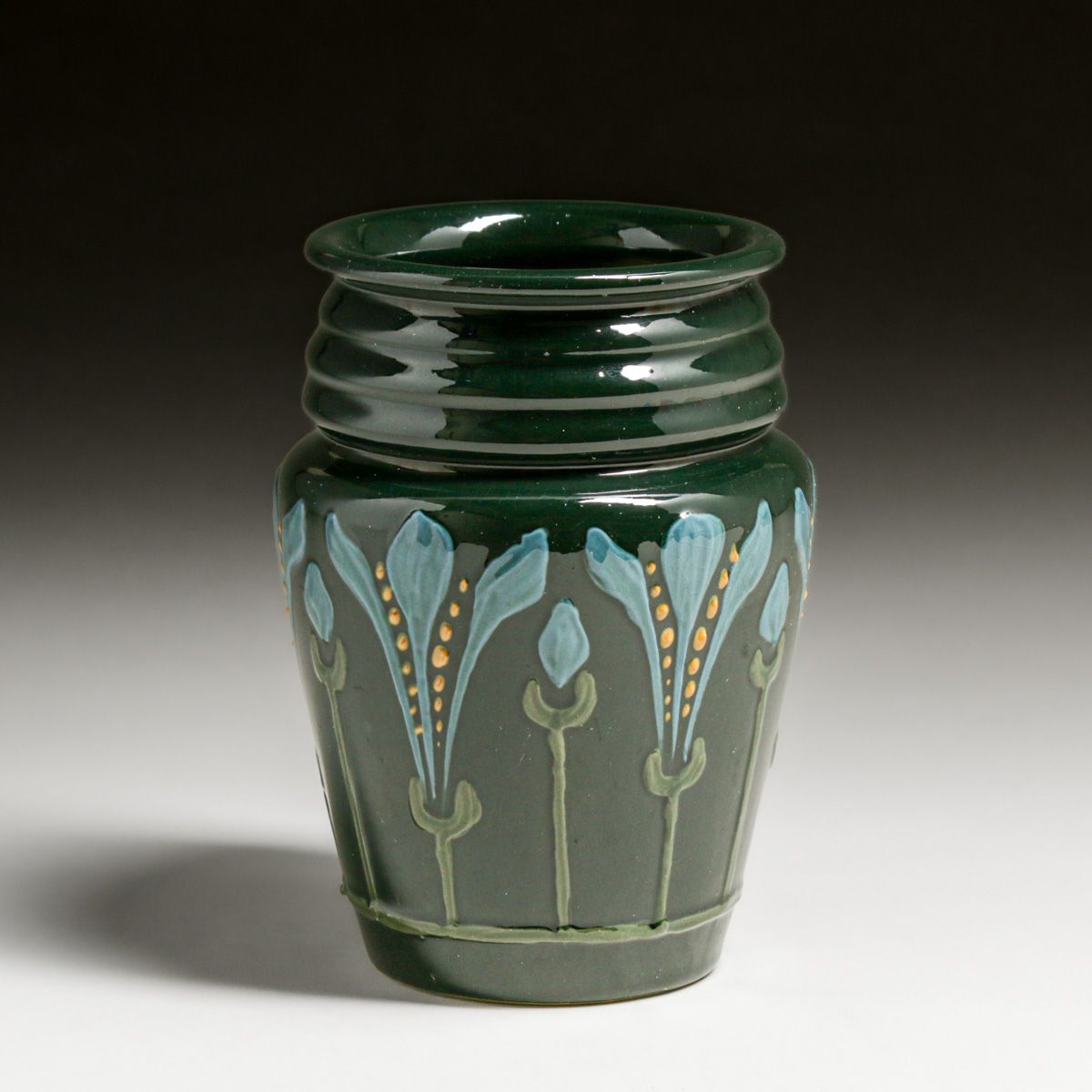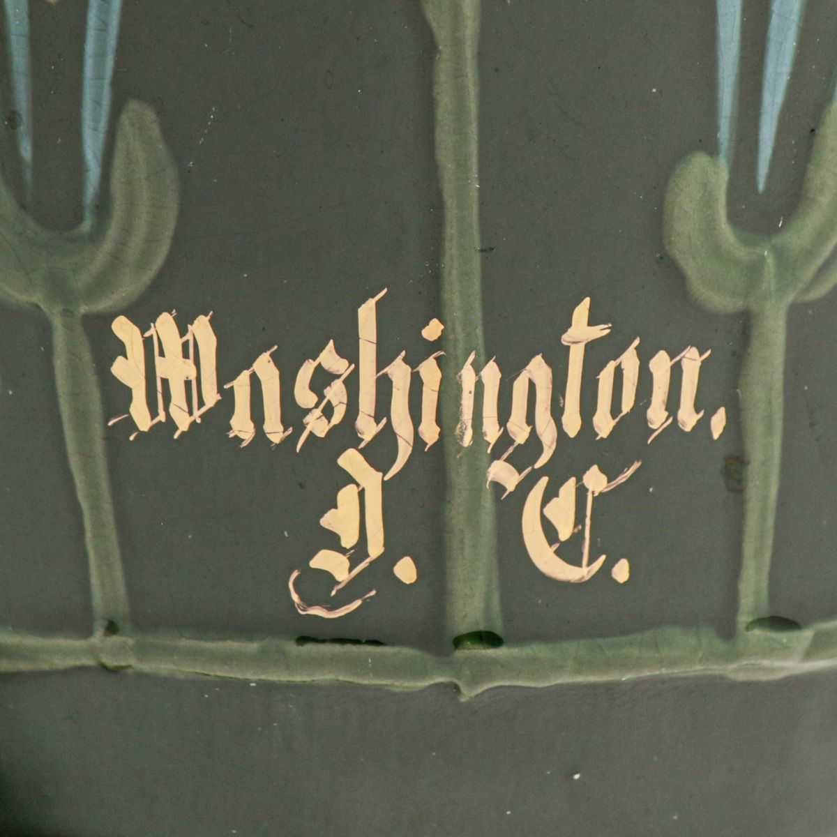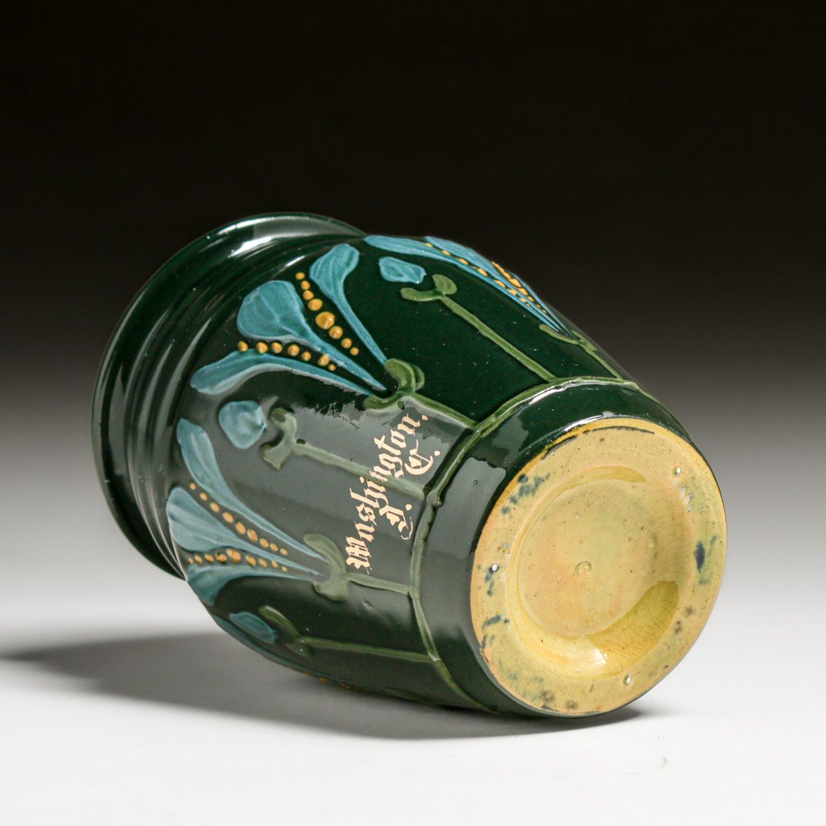 Roseville Crocus Squeeze-Bag Decorated Vase c1905. Unsigned. Probably made as a souvenir piece to be sold in Washington D.C. Perfect condition. 6.25"h x 5"d