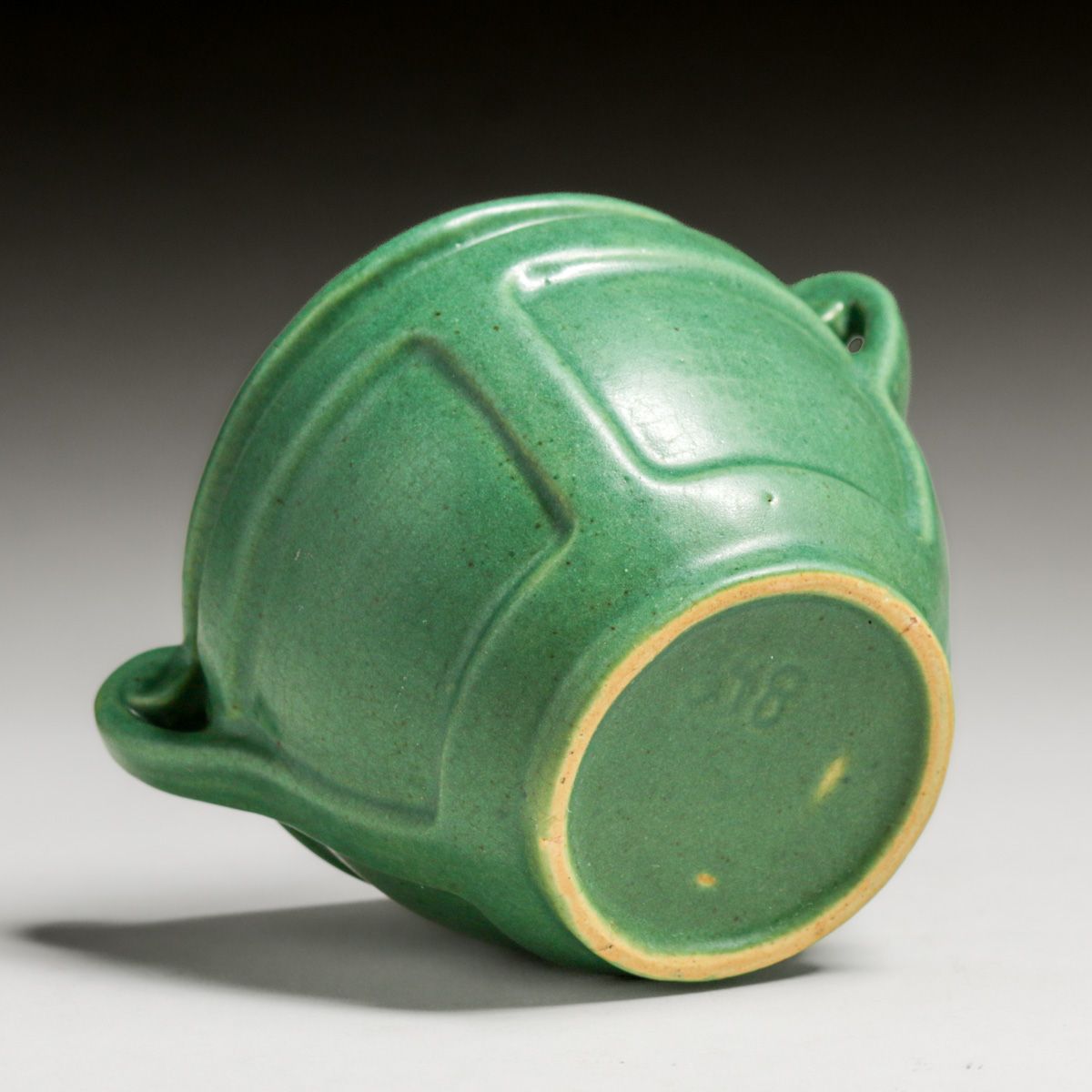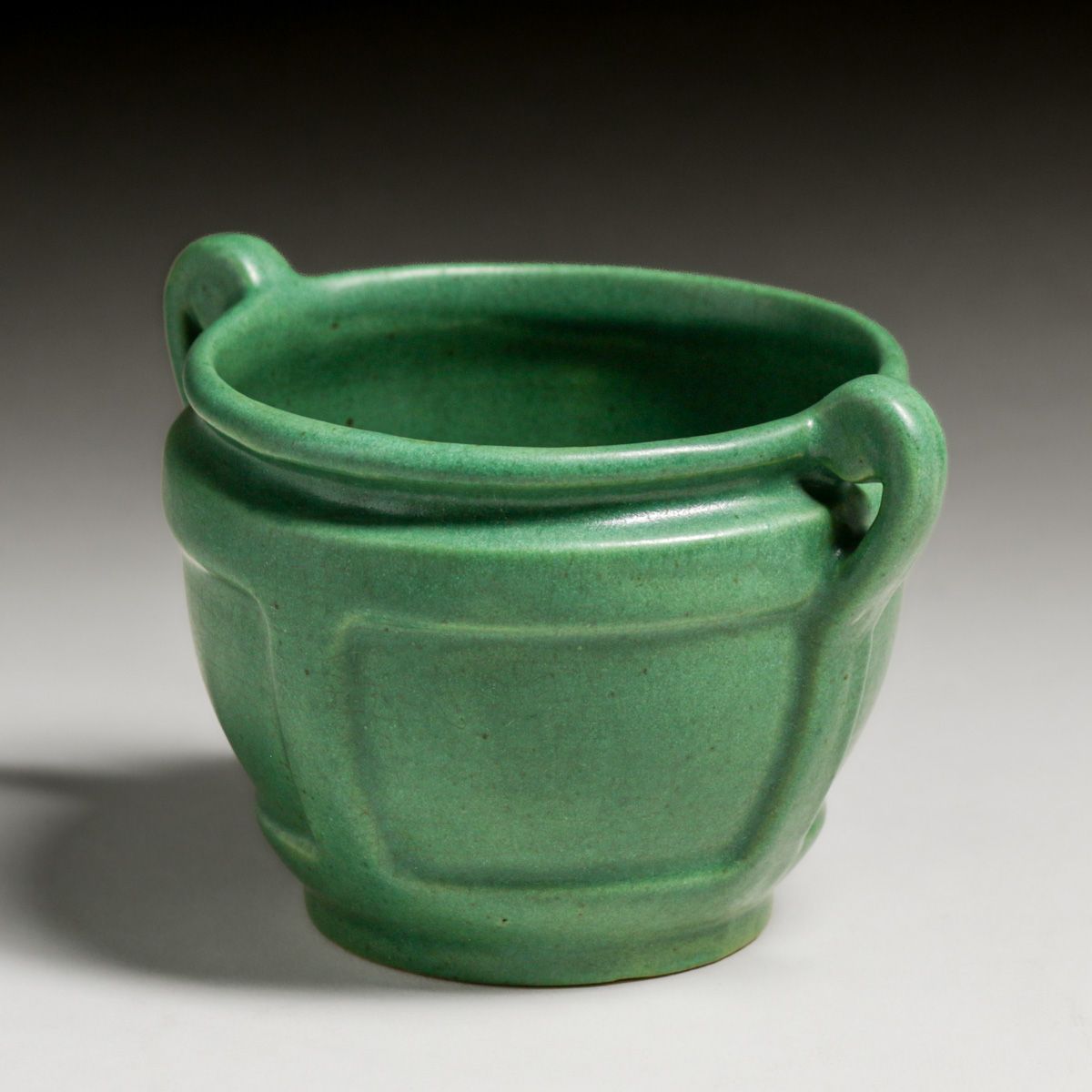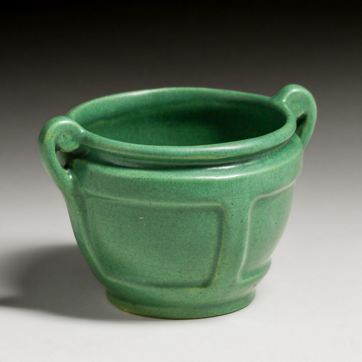 Roseville Matte Green Two-Handled Vase c1910. Unsigned. Perfect condition. 3.75"h x 5.75"w