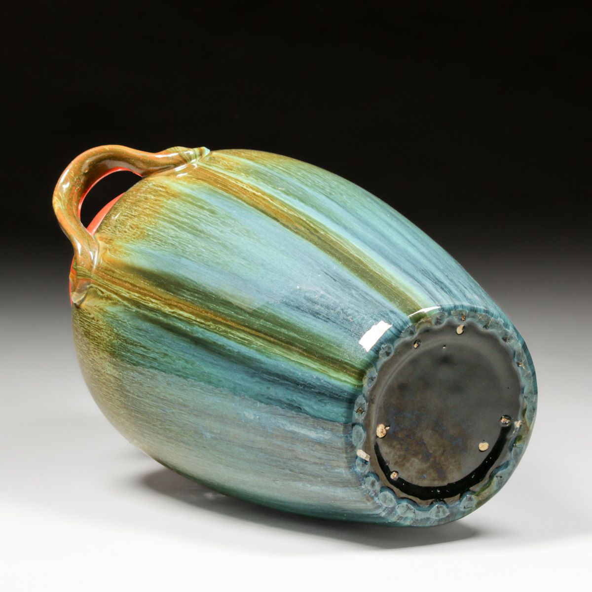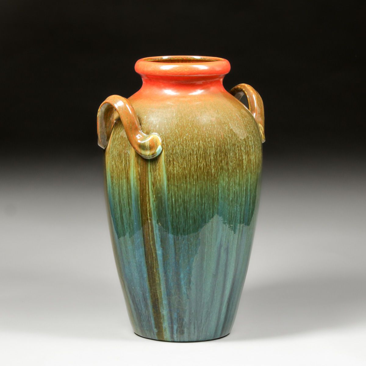 Stangl Sunburst Hand Thrown Two-Handled Vase after 1929. Unsigned. Perfect condition. 18”h x 13”w x 11”d