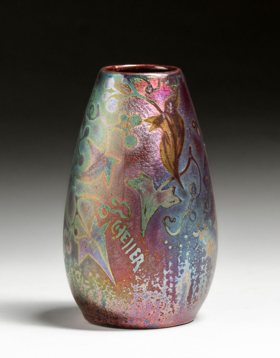 Weller Sicard Iridescent Vase c1905. Signed. Perfect condition. 5.25″h x 3″d