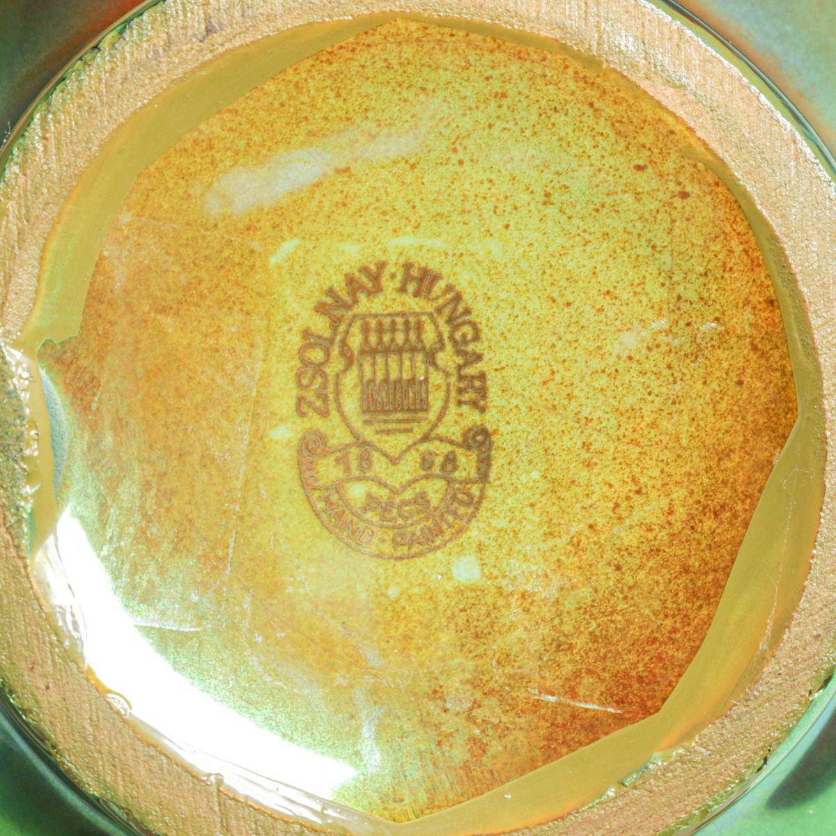 Zsolnay - Hungary Art Nouveau Iridescent Green Vase c1910. Signed. Perfect condition. 4.5"h x 3.75"d
