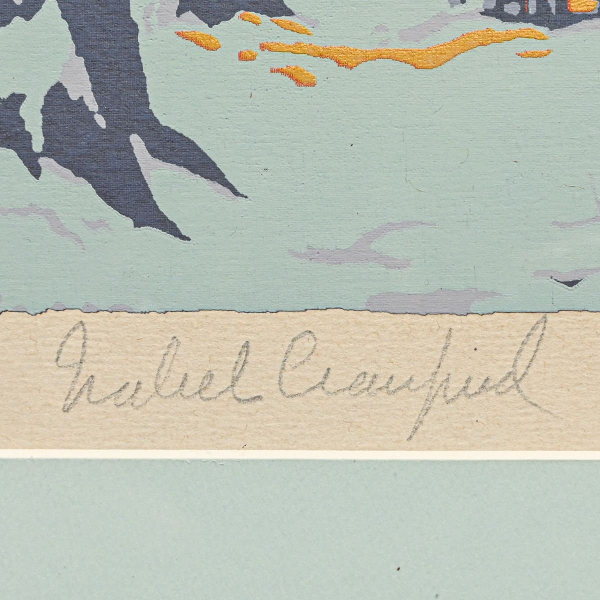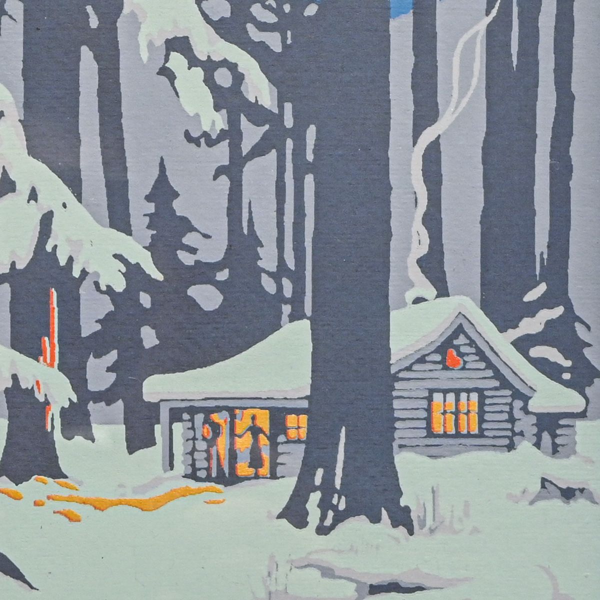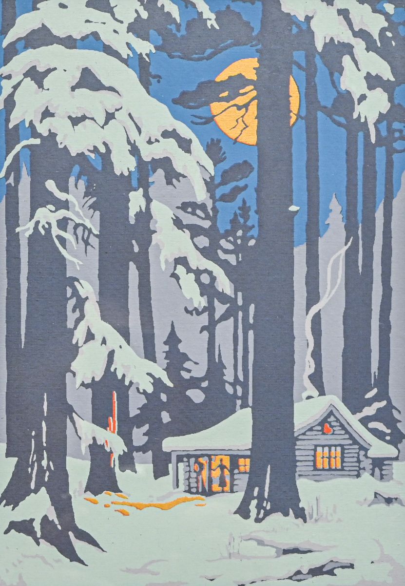 - Isabel Crawford (1886-1974) Serigraph: Winter Cabin with Moonrise c1920s