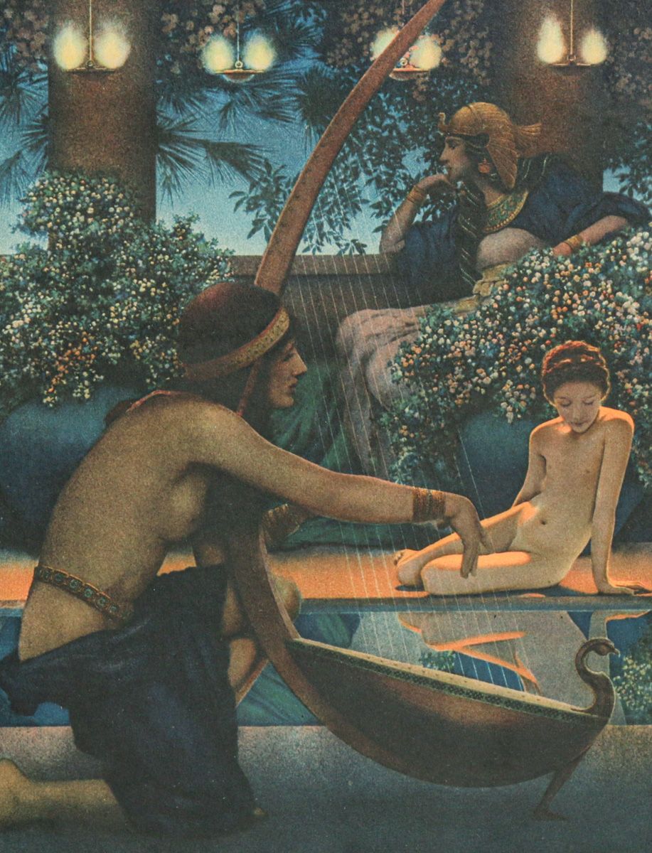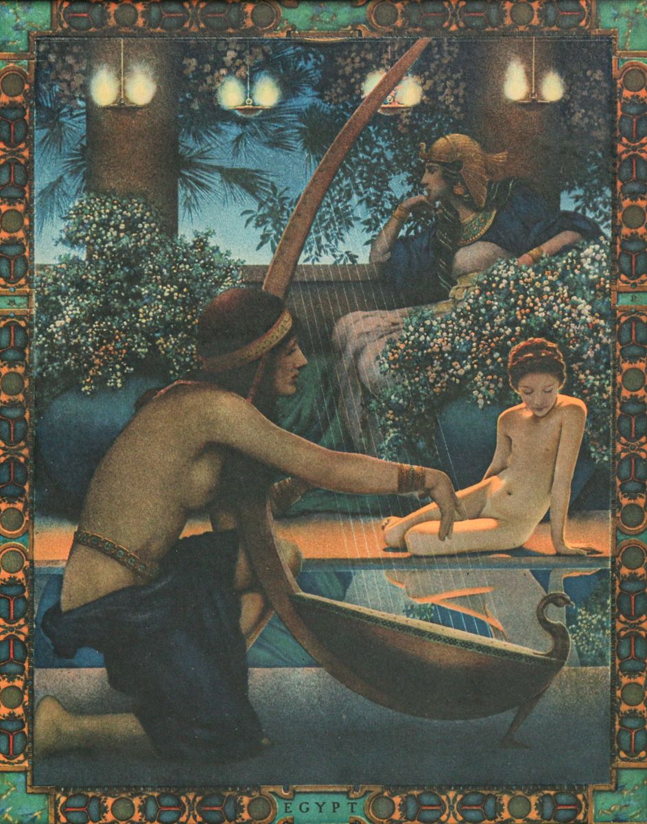 Maxfield Parrish (1870–1966) Art Deco Lithograph "Egypt" c1920s. Unsigned. Light scuff to original frame otherwise excellent condition. OD: 11"h x 9"w ID: 9"h x 7"w