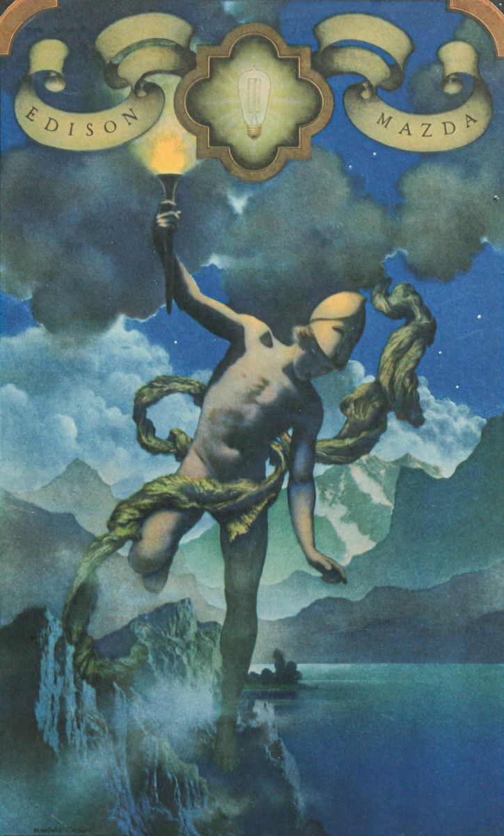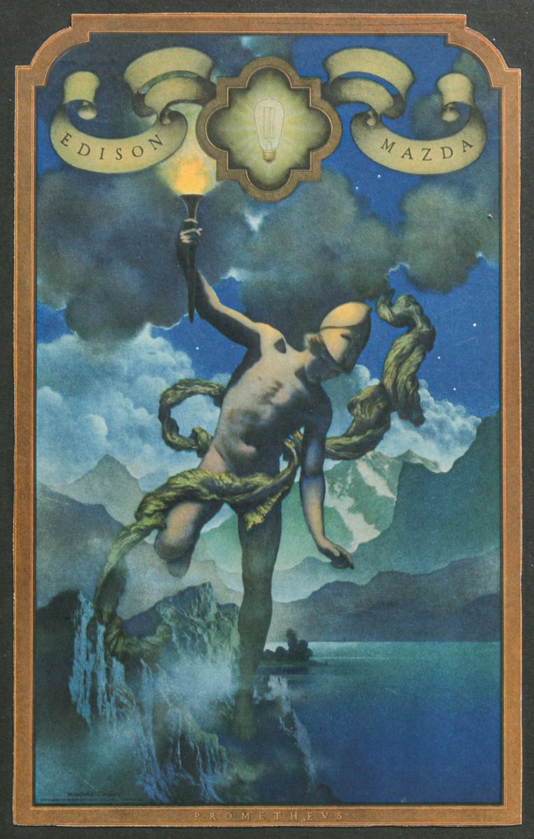 Maxfield Parrish (1870–1966) Art Deco Lithograph "Prometheus" c1920s. Signed in print. Excellent condition. 15"h x 11.5"w ID: 12.5"h x 8.5"w