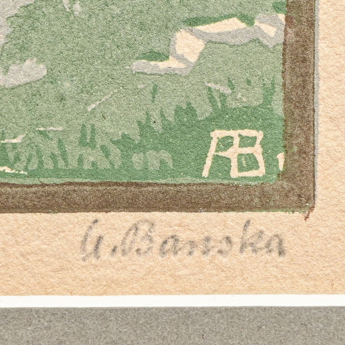 - Albert Banska (German 1889-1957) Color Woodcut "Landschaft" c1920s
