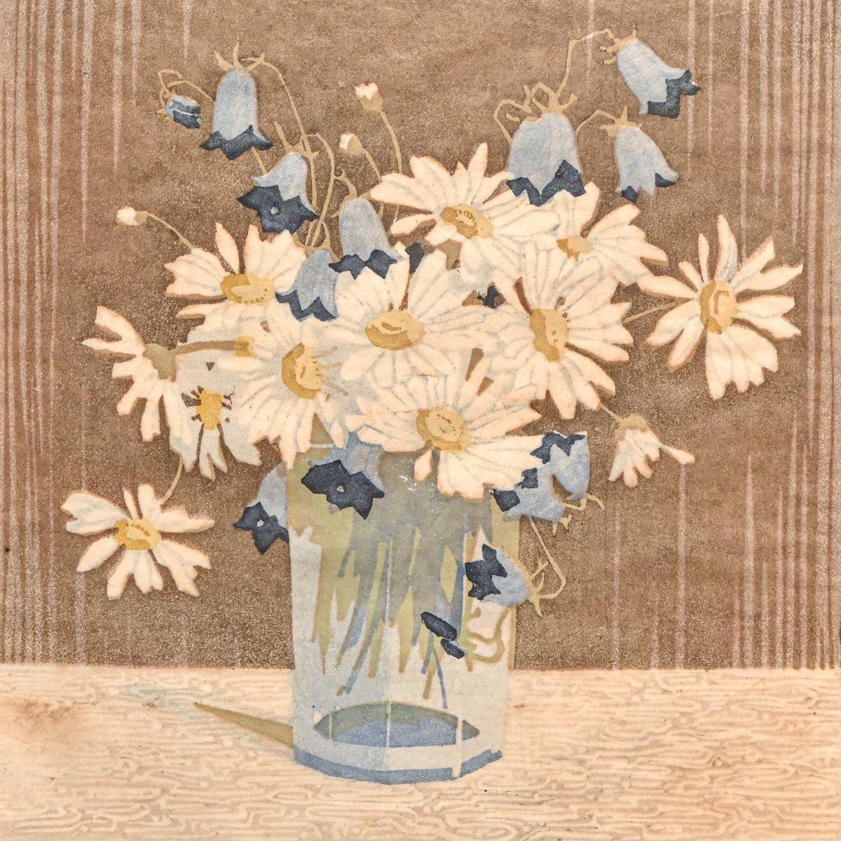 Dagmar Hooge (German 1870-1930) Color Woodcut "Blumenstillleben" (Flower Still Life) c1910s. Signed. Excellent condition. 9"h x 8 5/8"w. Frame 13 3/8" x 13 3/8"
