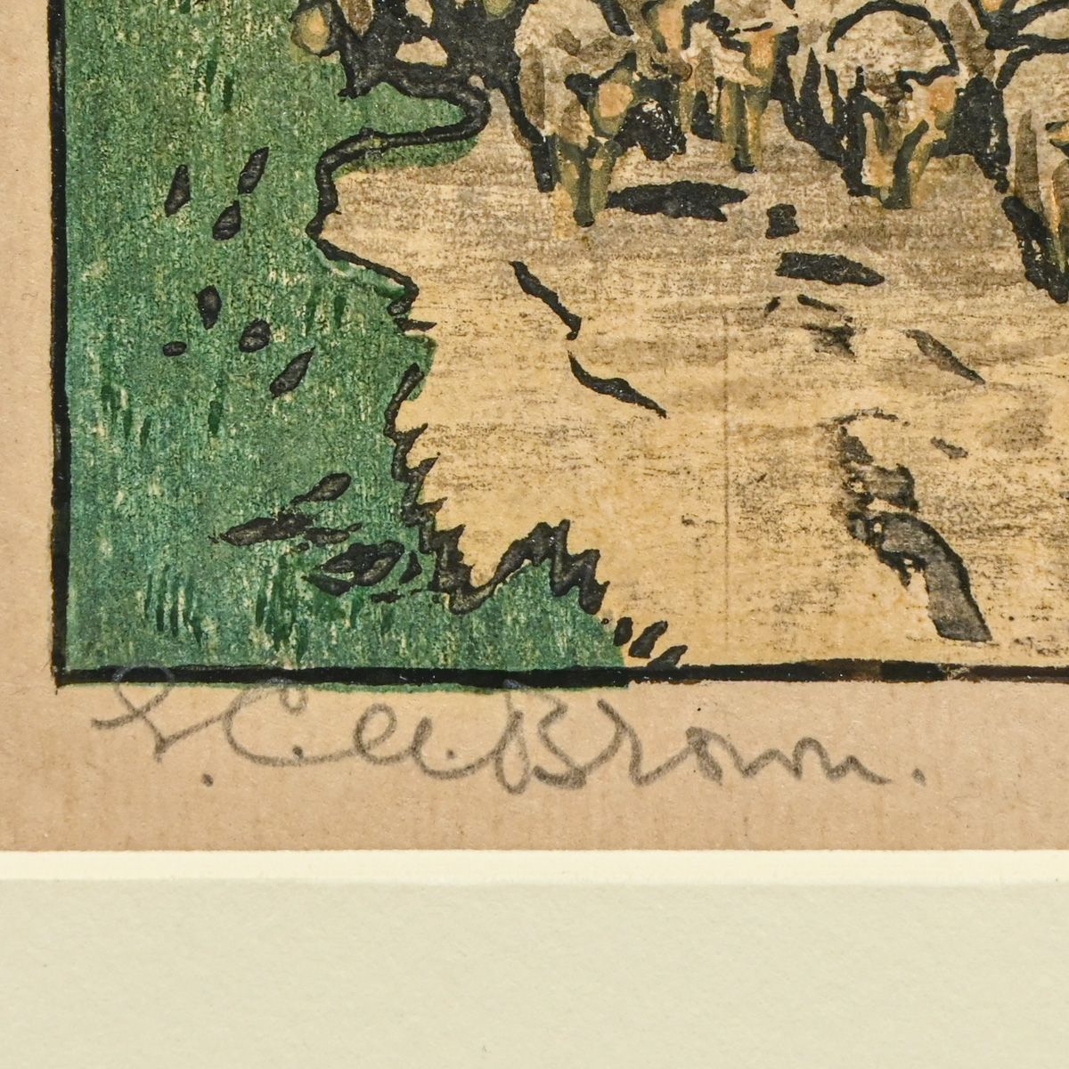- Elizabeth Christie Austen-Brown (British 1869-1942) Color Woodcut "Shepherd and Sheep" c1920