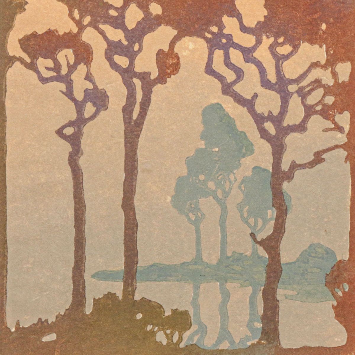 - Heinrich Carl Color Woodcut "The Oakes" 1920