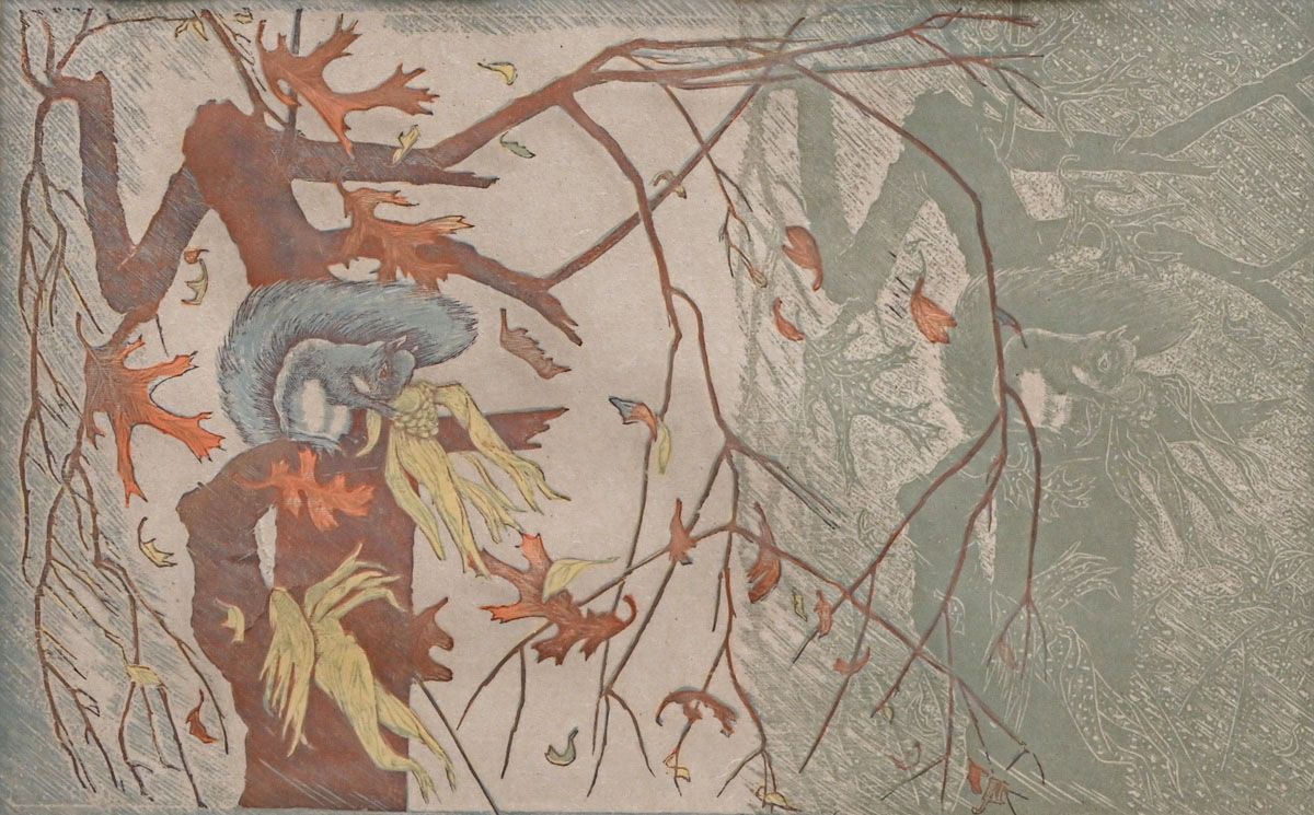 - James Dexter Havens (1900–1960) Color Woodcut "Corn Husking Bee" 1959