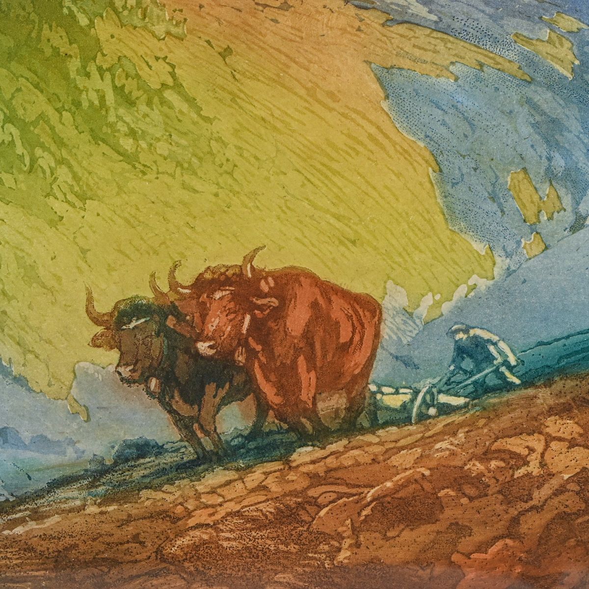 - John Wesley Cotton (1869-1931) Color Etching & Aquatint "Toilers In the Pyrennes" 1915