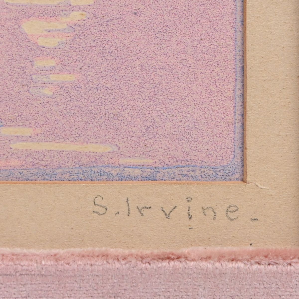 Sadie Irvine (1887-1970) Color Woodcut "Sailboat with Full Moon-Pink" c1915. Signed. Slight rippling to paper, otherwise excellent condition. 10 7/8 x 6 1/8". Woodblock prints by this important Newcomb College pottery decorator are not common.