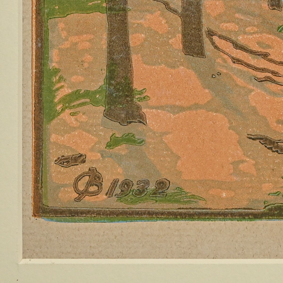 Vadim Dmitrievich Falileev (Russian 1879-1950) Color Woodcut "Bathers at a Lake" 1932. Signed. Excellent condition. 9 1/8"h x 12.75"w. Frame 18.5"h x 21.5"w