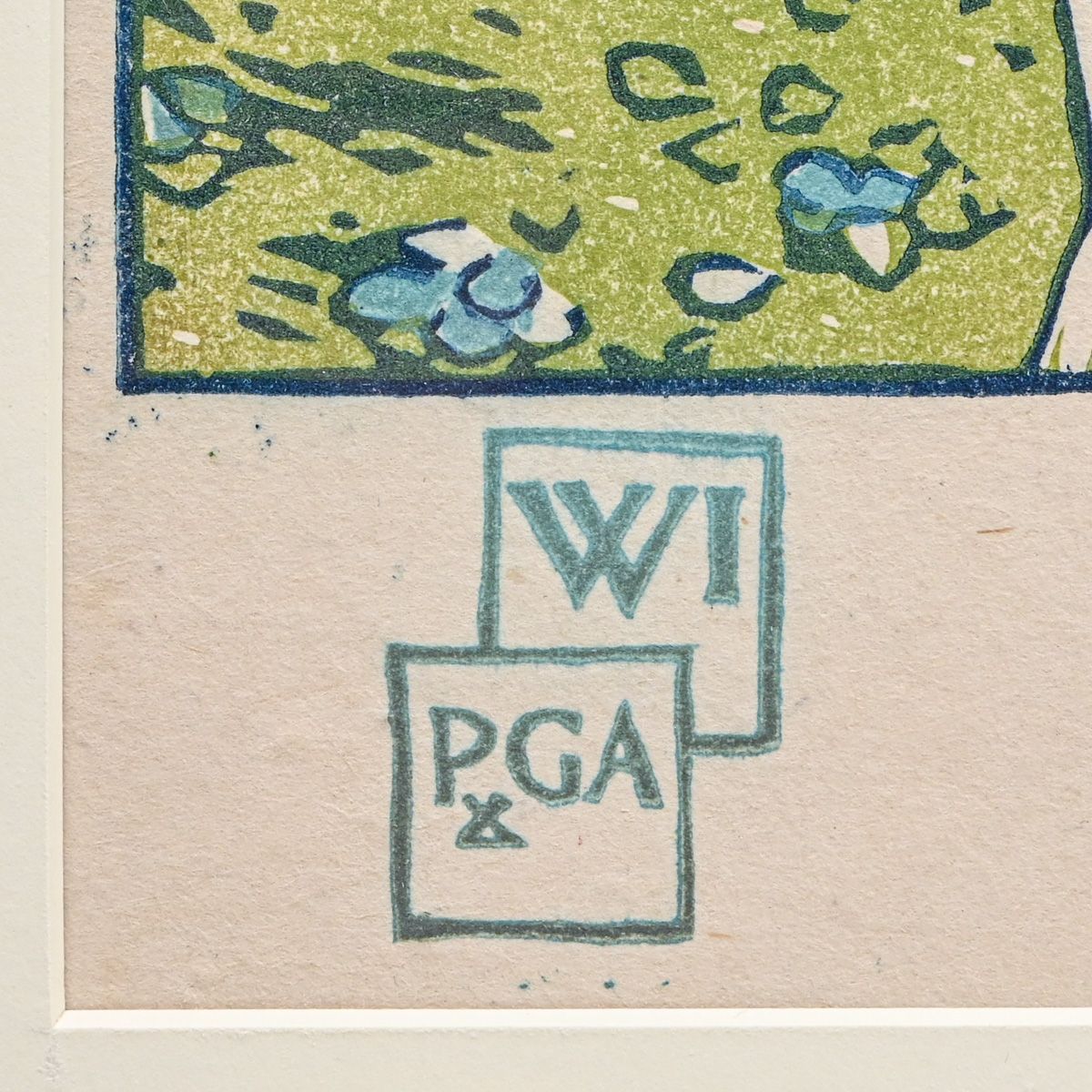 Vojtech Preissig Wentworth Institute Boston Printing & Graphic Arts Institute Color Linocut c1920. Signed. Excellent condition. 6.5"h x 4.5"w. Frame 16.5"h x 11.5"w