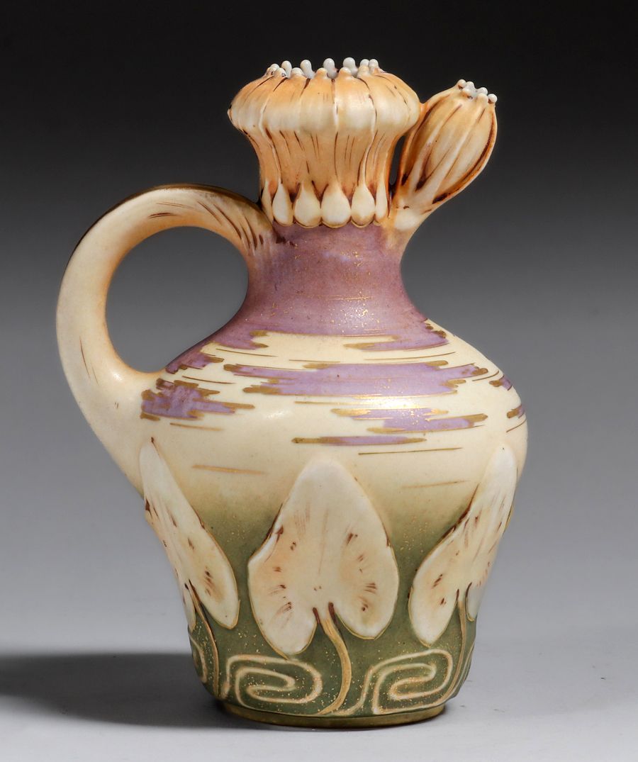 - Amphora Pottery Lily Pad Decorated Pitcher c1900