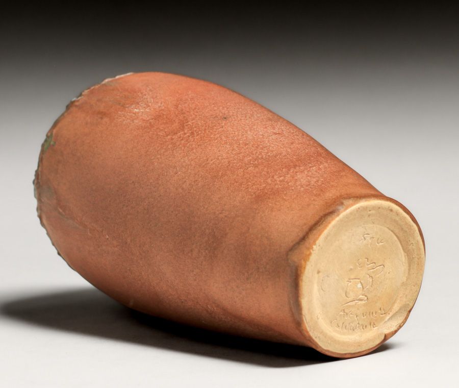 Arequipa Pottery Squeeze-Bag Decorated Spades Vase c1911-1912. Signed. Invisible professional restoration to tight hairline, otherwise perfect condition. 6"h x 3 1/8"d $12,000
