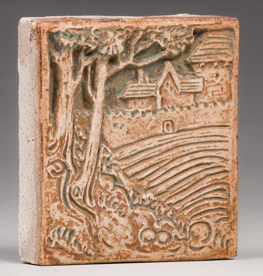Batchelder - Los Angeles Scenic Tile c1920s. Signature covered in old grout. Excellent condition for having been previously removed. 3.75" x 3.75" SOLD
